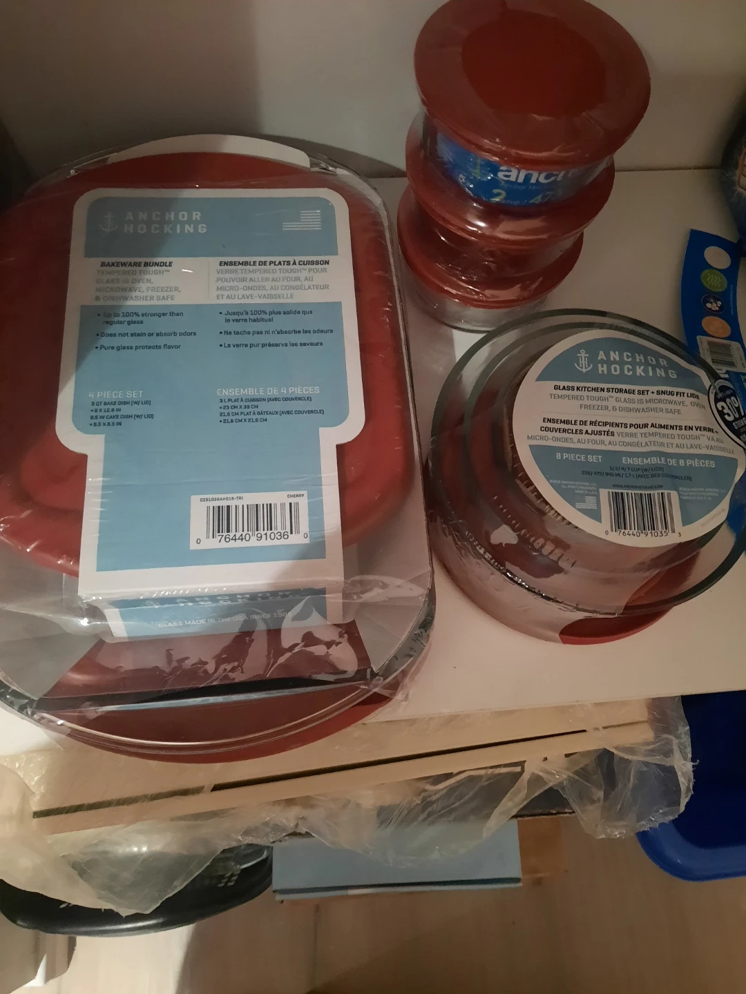 I'm selling 3 Anchor Hocking Glass Bakeware and kitchen storage sets with lids! These sets are Brand New and still in their original packaging. Perfect for Baking, Serving, Re-Heating and Storing.