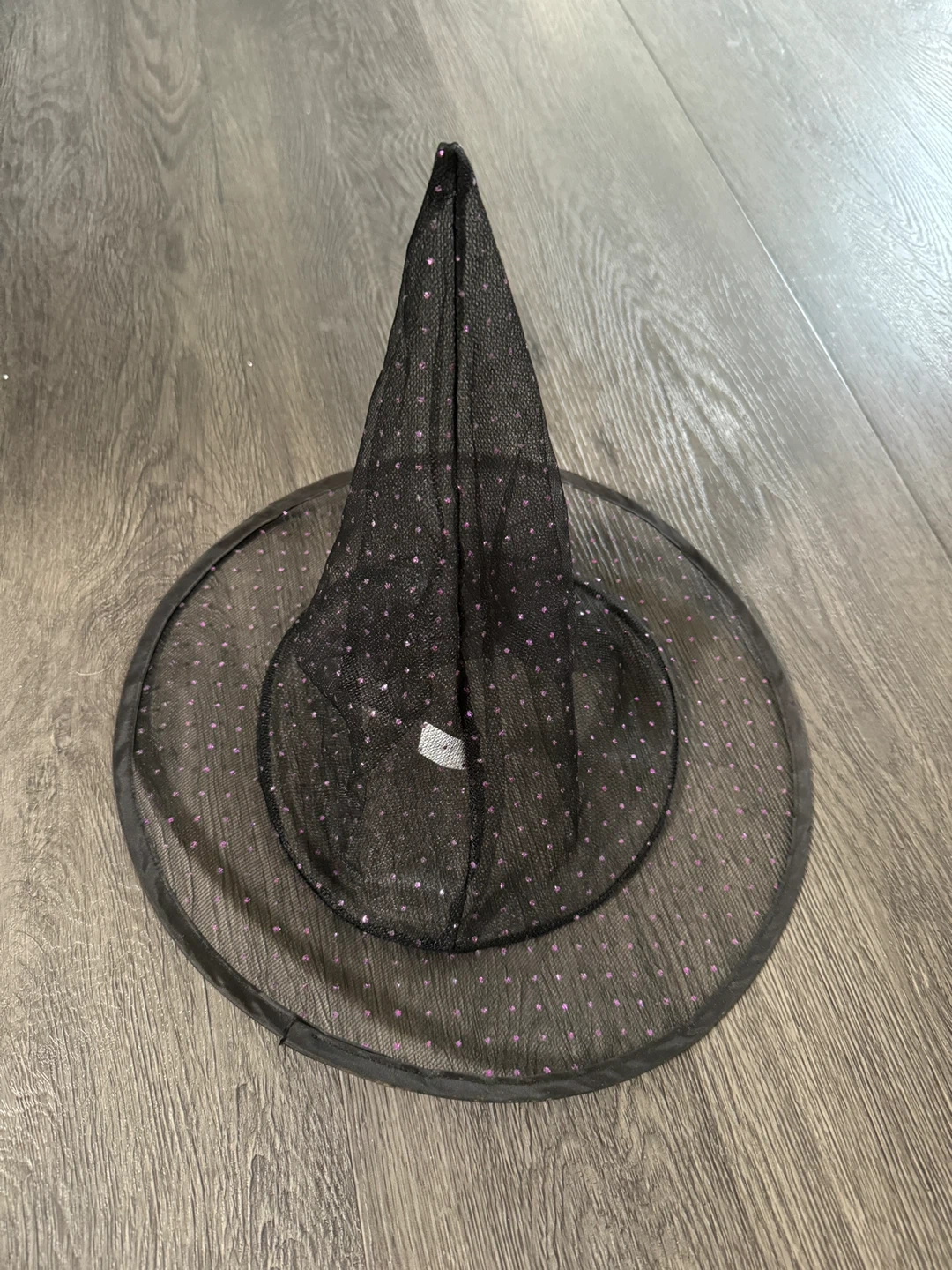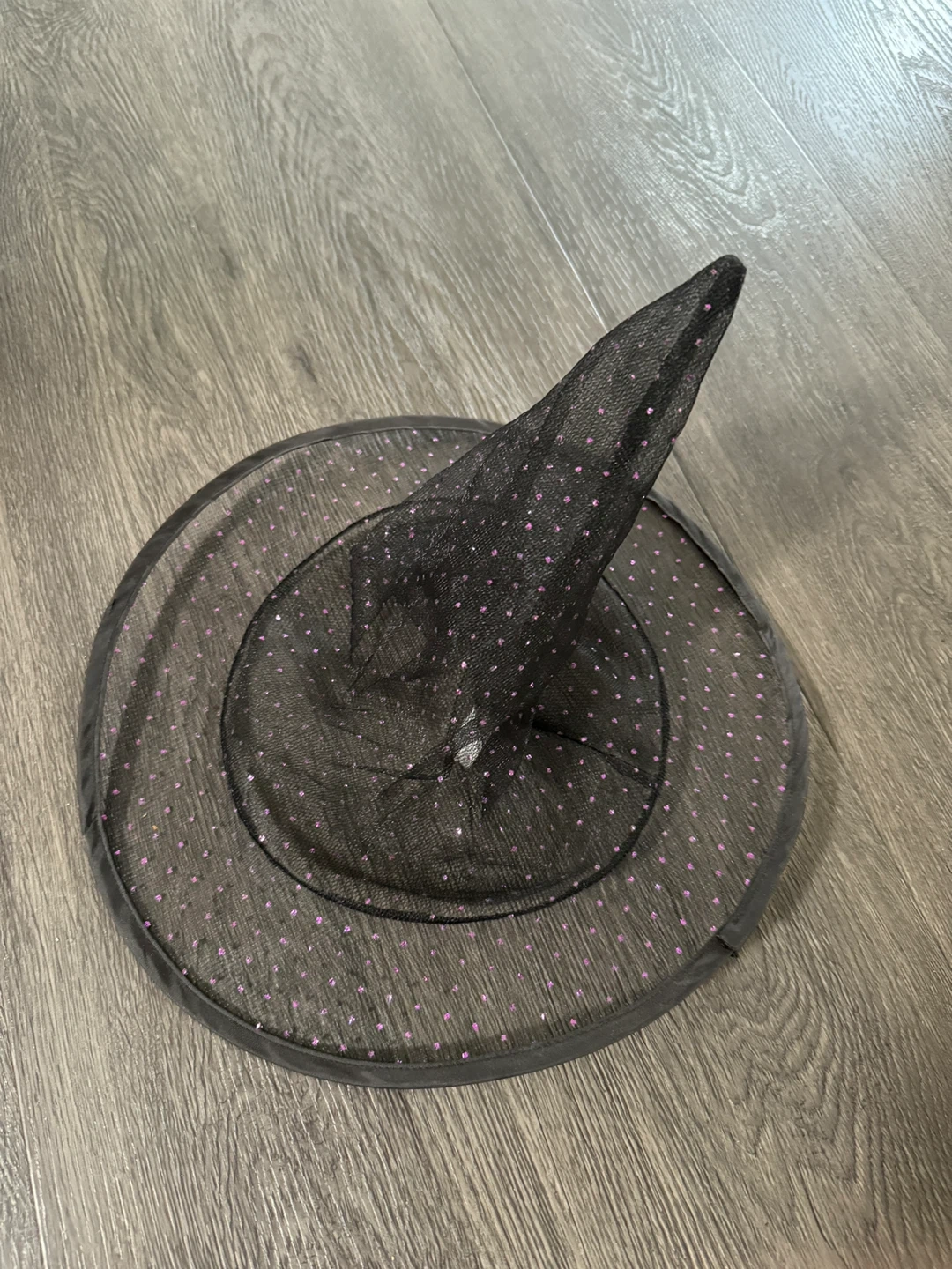 Selling a black witch hat with cute purple polka dots! Perfect for Halloween or costume parties. It's in great condition and ready for a new owner