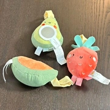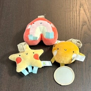 • FEATURES: 3 hanging plush toys with hook for car seat or stroller.