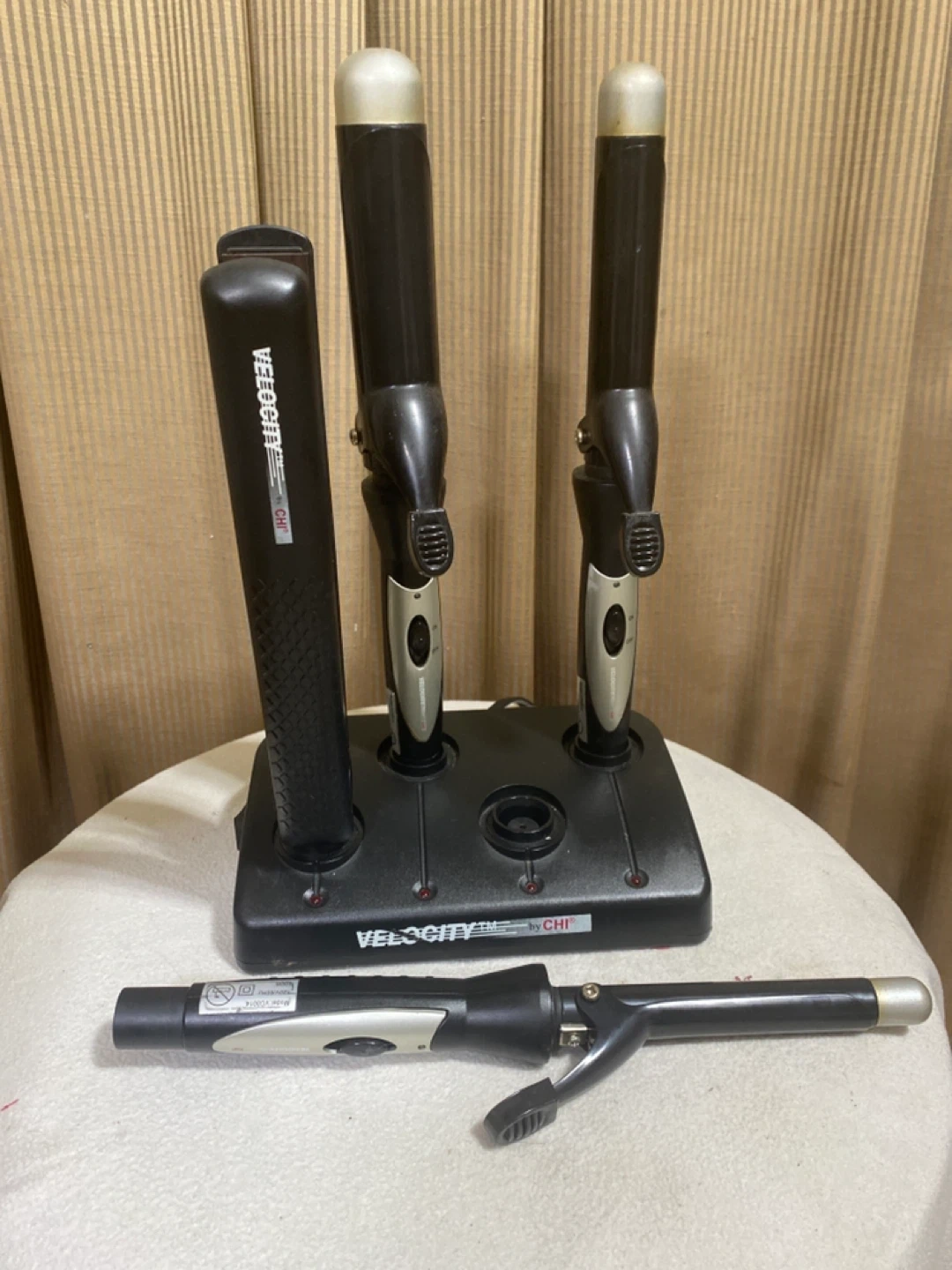 Selling a CHI Velocity hair cordless styling set. Includes a flat iron and three curling iron attachments, all in a convenient stand. Perfect for creating a variety of hairstyles!