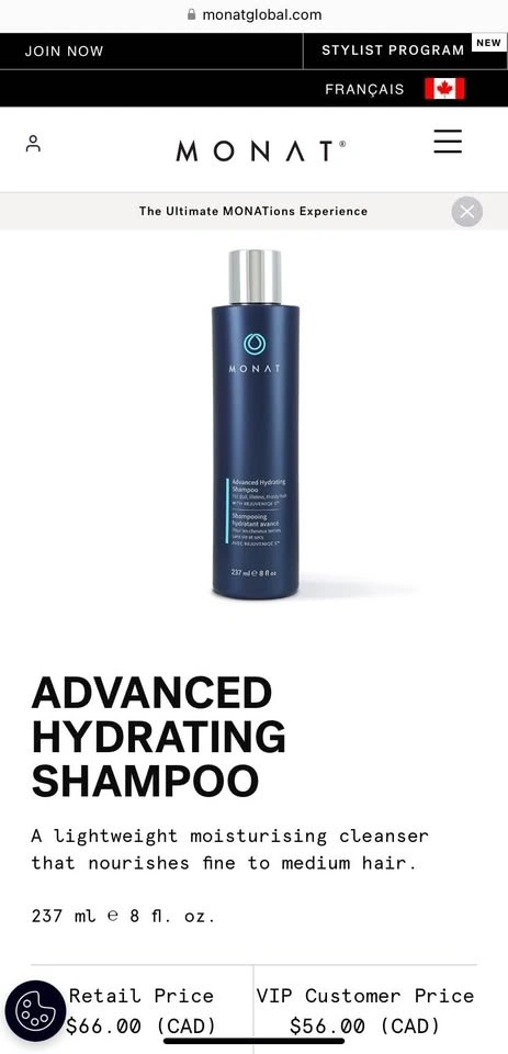 New sealed Monat Advanced Hydrating Shampoo