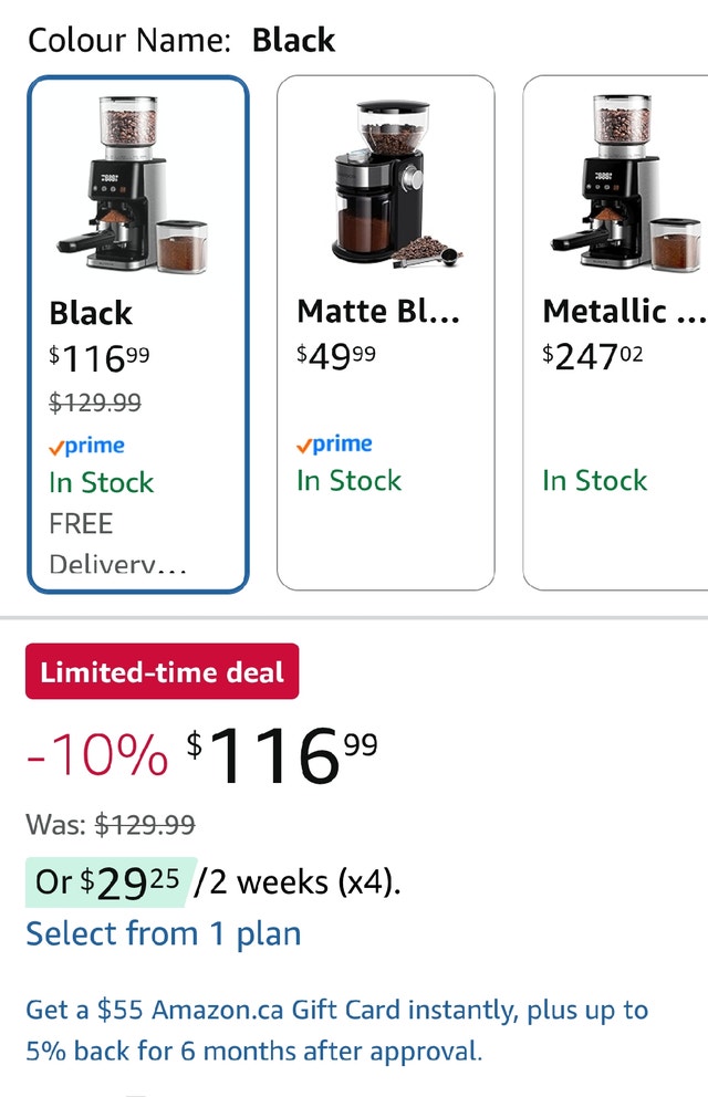 1 / 31 / 3Buy & SellElectric Coffee GrinderElectric Coffee Grinder$40Fairly used. Retails for $120 plus tax. Pickup in Vaughan or Woodbridge.WHERE TO MEETCheck LocationView MapSELLERverifiedAlexConcord1083 reviews0 chats·1 favorites·5 viewsSEND CHAT TO SELLERHi Alex! I’m interested in your listing.Hi Alex! I’m interested in your listing.Get the Karrot app to chatSign In to chat