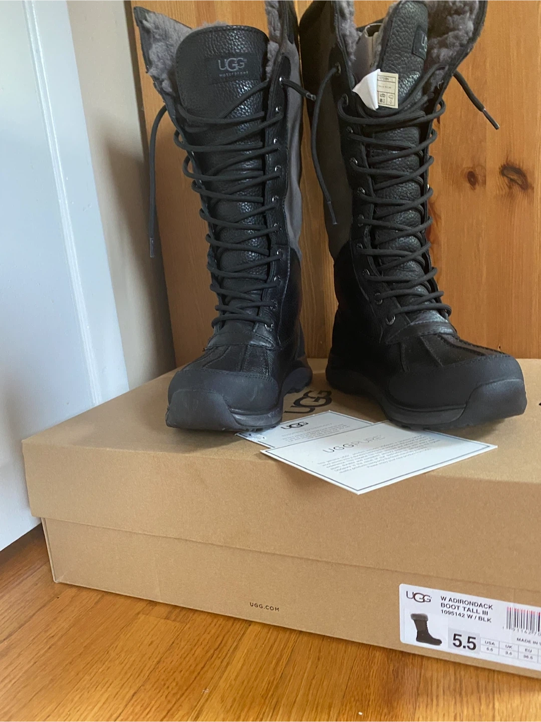 Selling a pair of UGG Adirondack Boot Tall III in black, size 5.5.