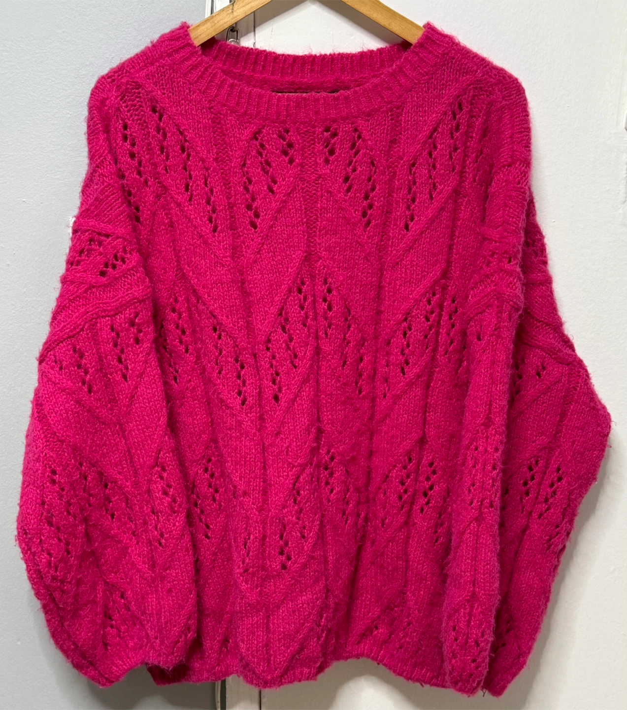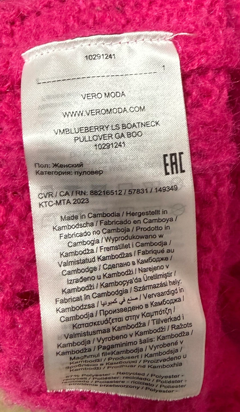 Selling a Vero Moda pullover sweater in a vibrant pink color! It's a size L and features a unique, eye-catching design. The sweater is made of a soft, cozy material, perfect for staying warm and stylish. It's in great condition and ready for a new home!