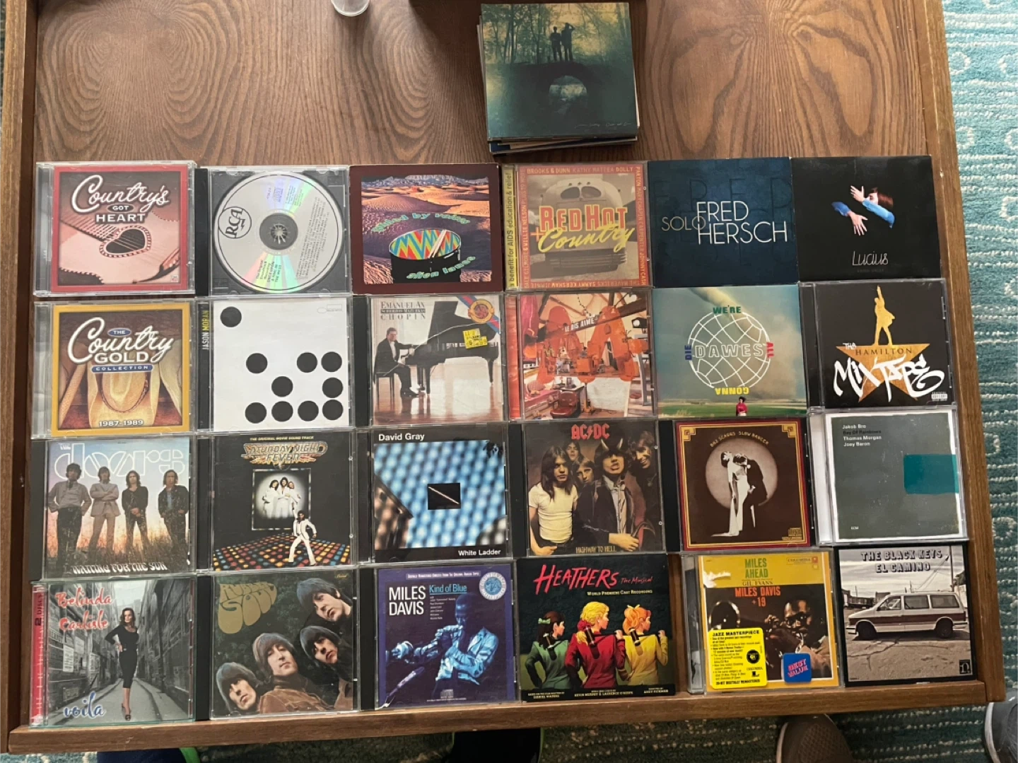 Selling a variety of CDs from different artists and genres! Includes titles from Miles Davis, The Black Keys, Beatles and more. Most are in good condition about 30 CD’s total!