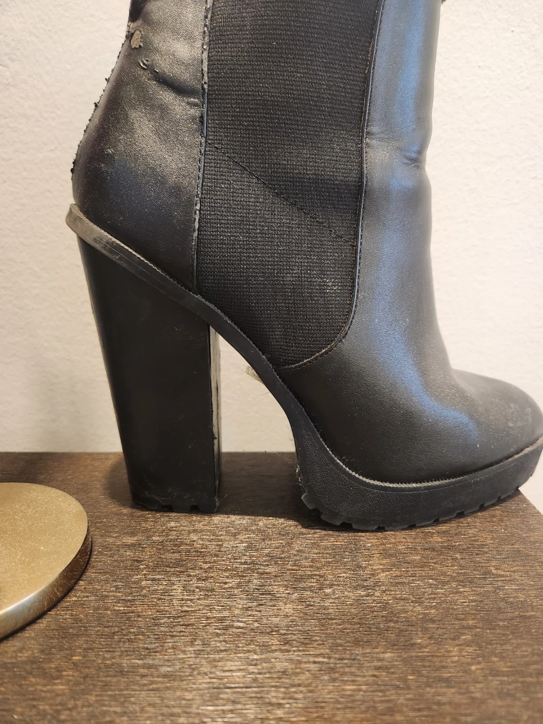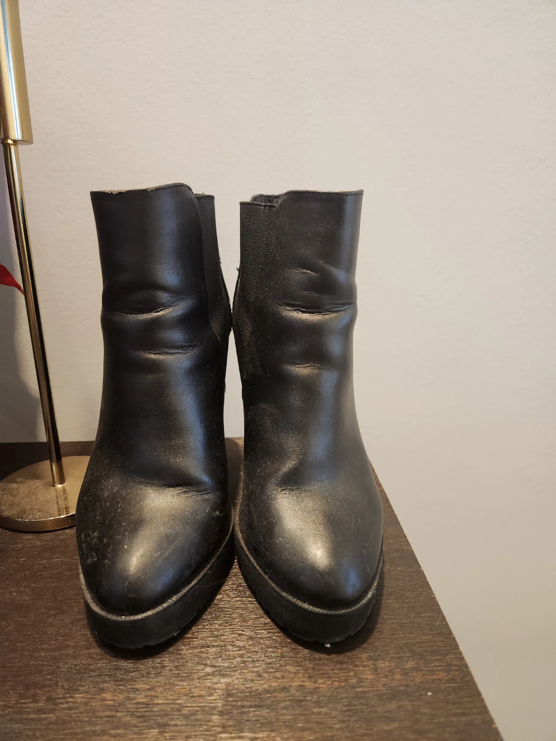 Selling a pair of black ankle boots. Size 7.5. They show some signs of wear, as you can see in the photos.