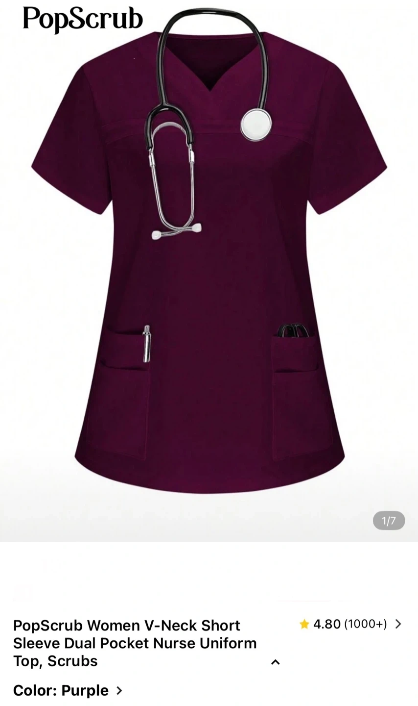 I'm selling a NWOT Popscrub women's scrub top in size XS. It's a lovely purple colour and features a V-neck with short sleeves and dual pockets. It's designed with a skinny fit. Perfect for any healthcare professional!