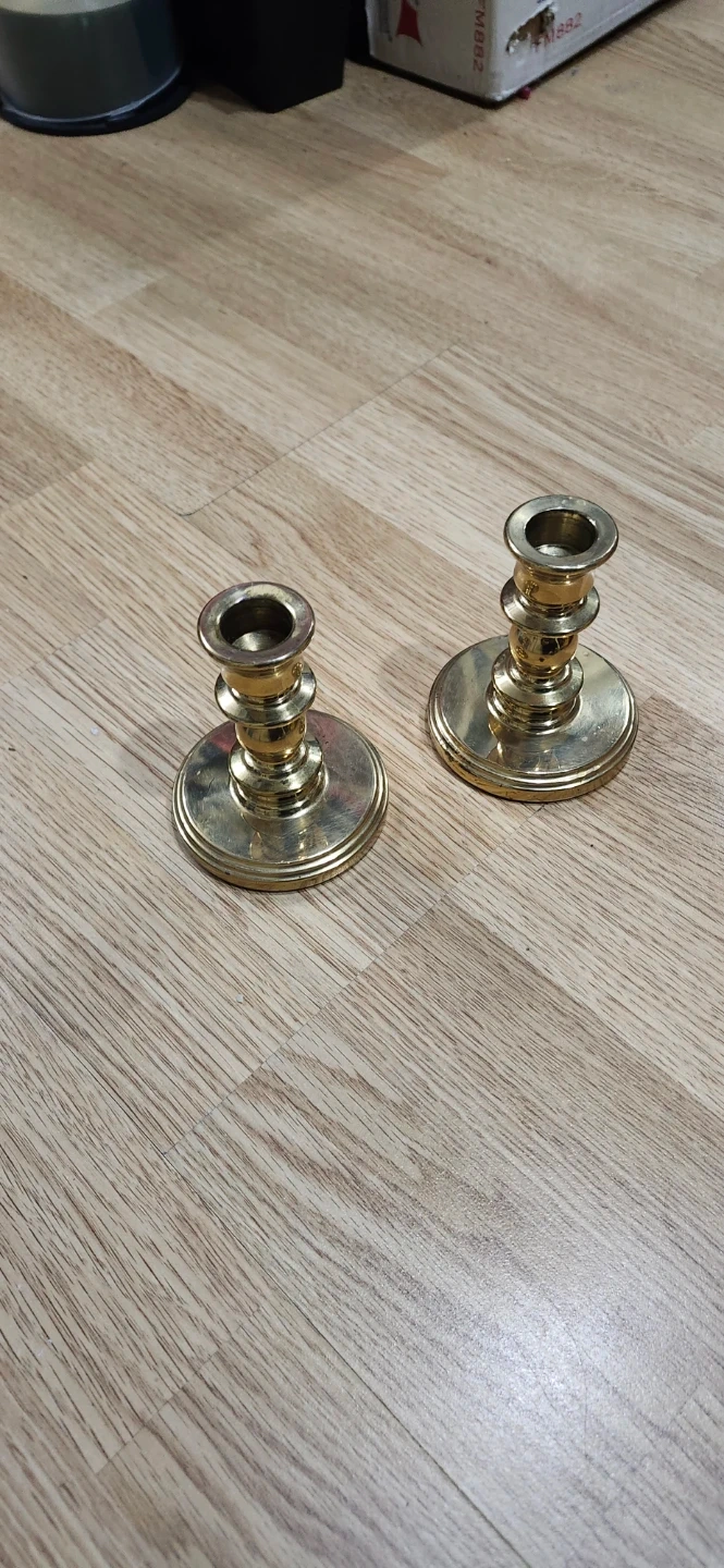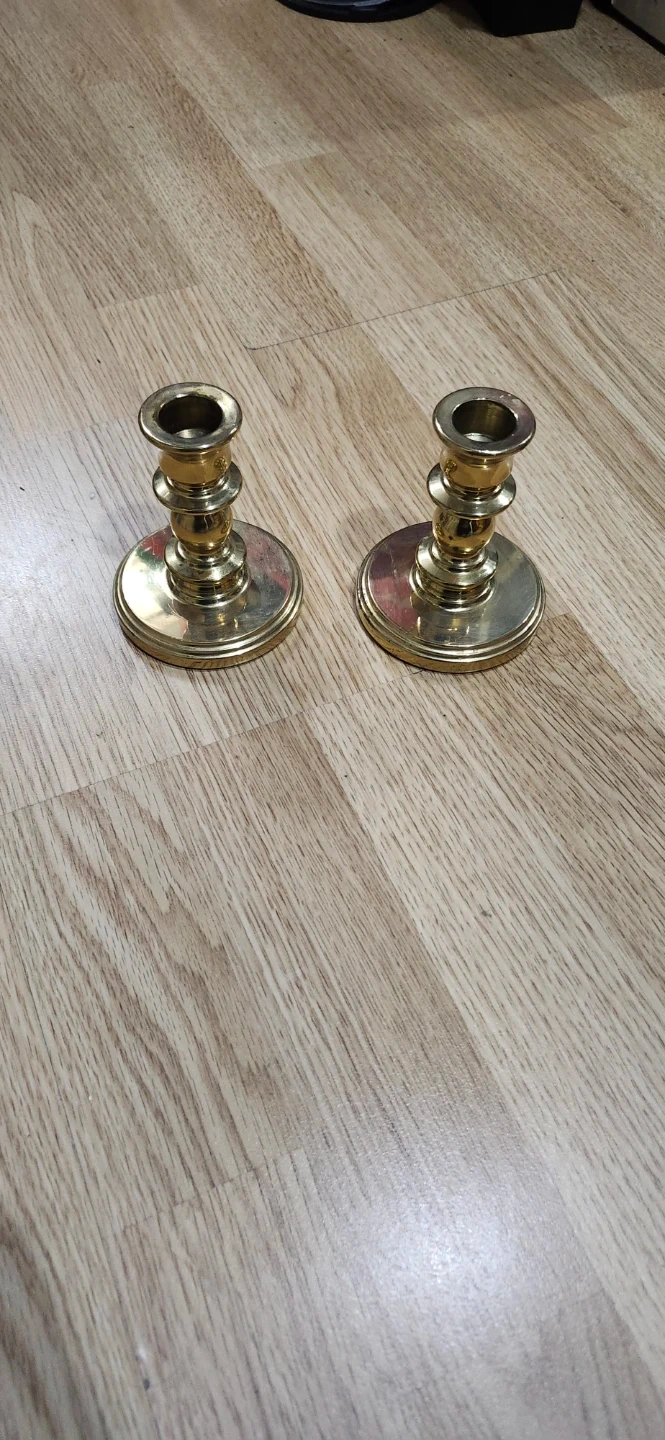 Here's a set of two brass candlestick holders. They have a classic design and would look great on a mantel or table. They are in good condition and ready to add some warmth to your home. Price firm only cash only pickup no delivery 801 O'Connor drive outside TD Canada Trust bank door East York