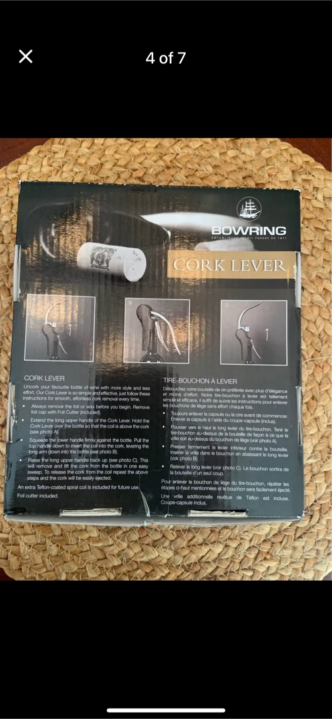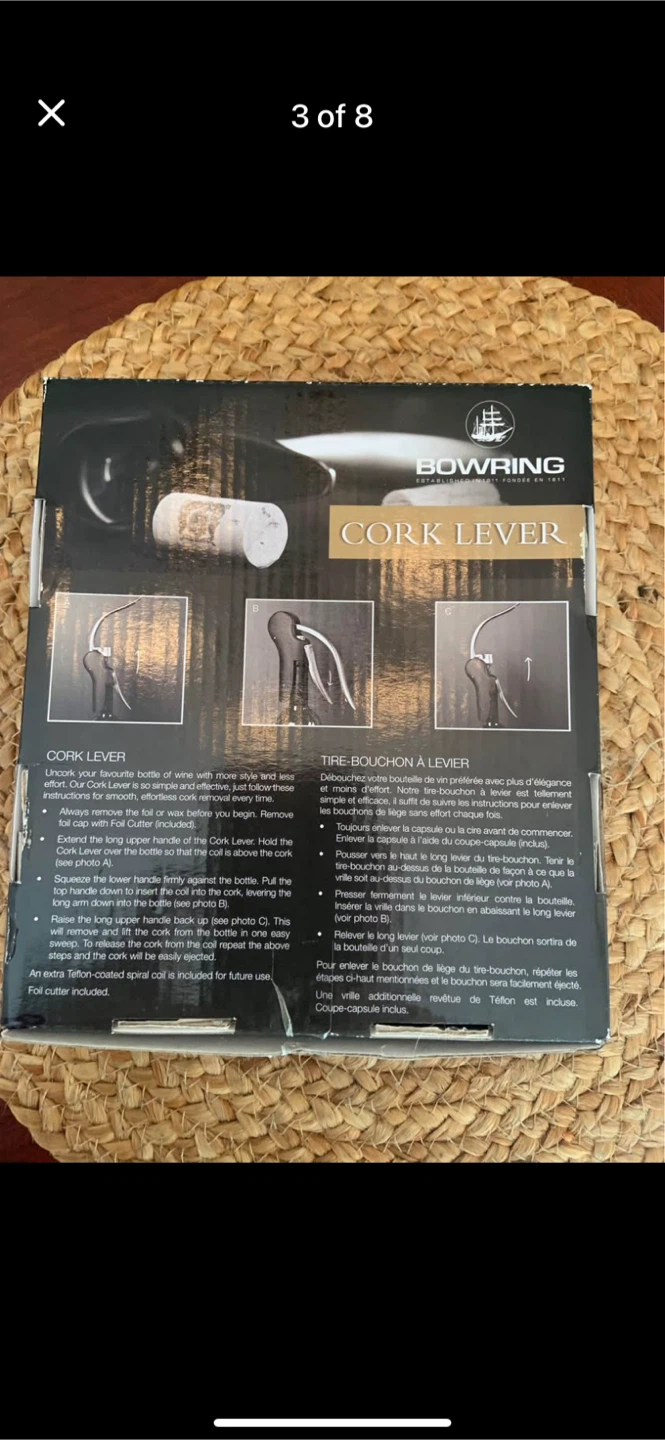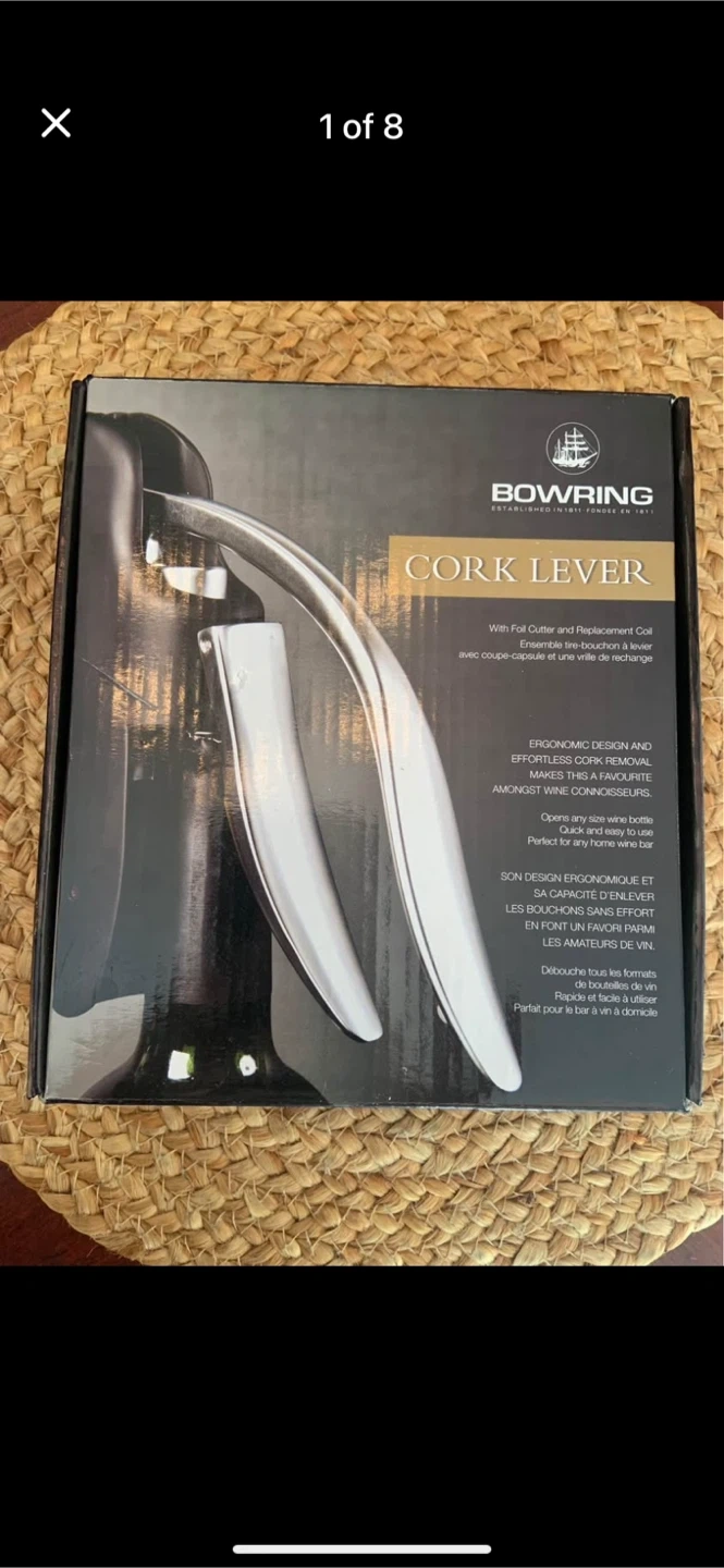 • This is a Bowring Cork Lever set, which is a type of wine bottle opener designed for easy cork removal.