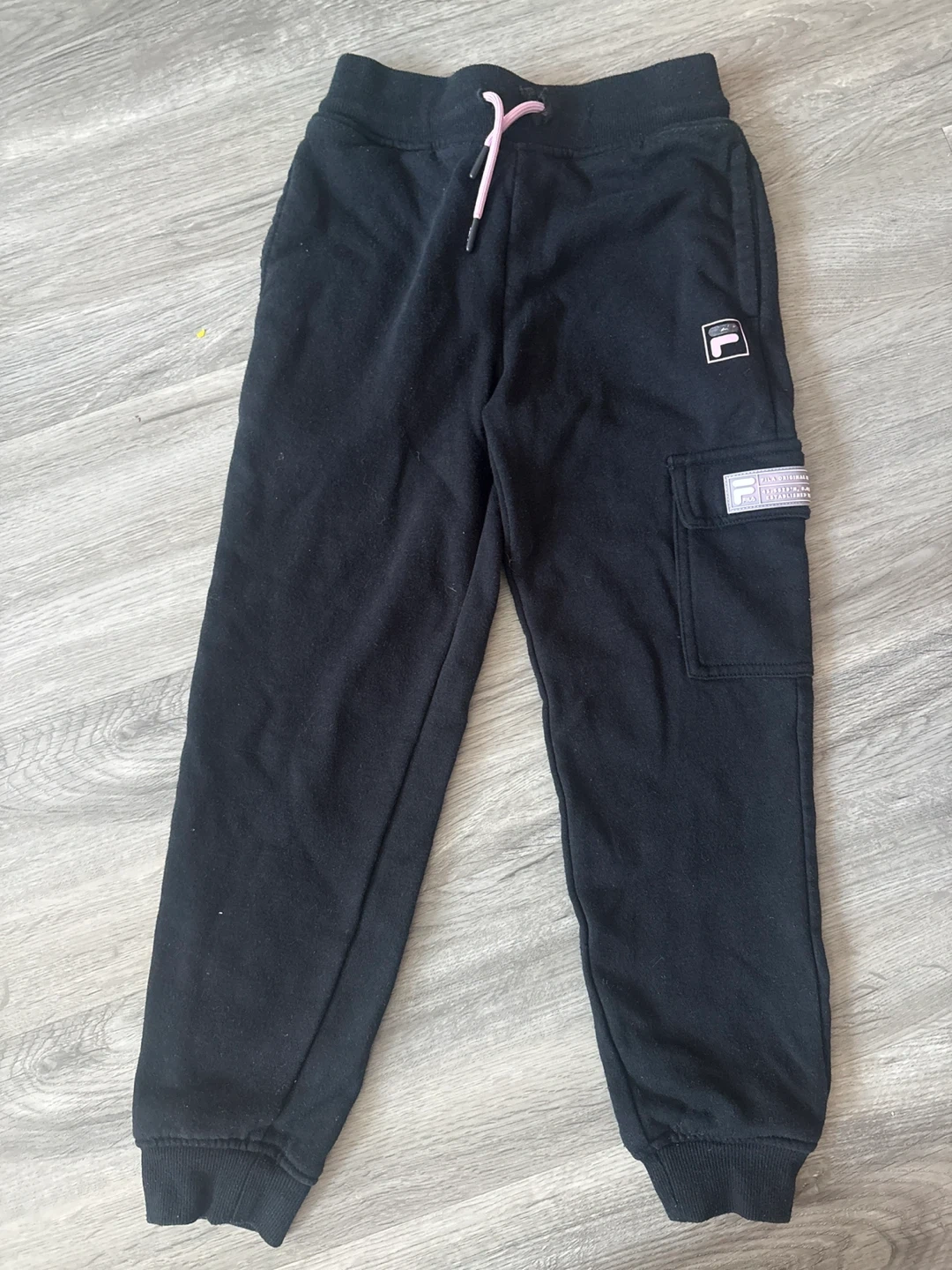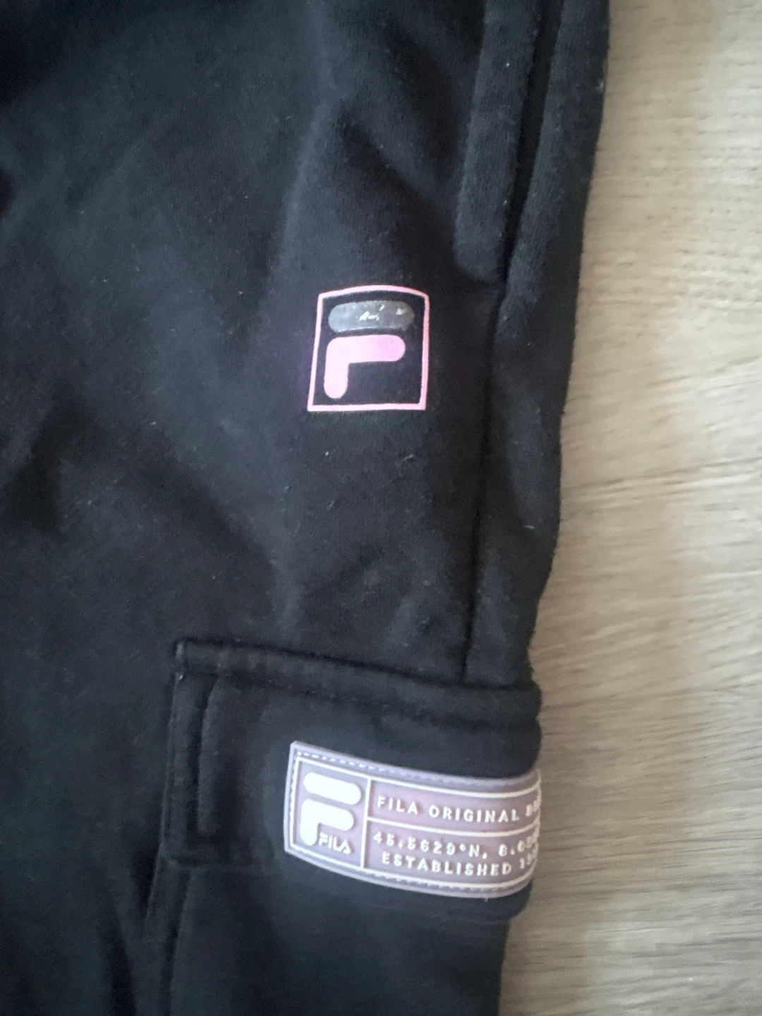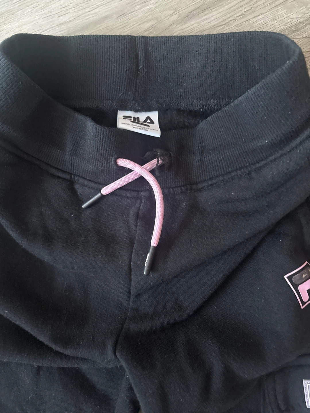 Selling a pair of Fila joggers in black. They're in great condition and ready for a new owner! The joggers feature a drawstring waist and a pocket on the side.