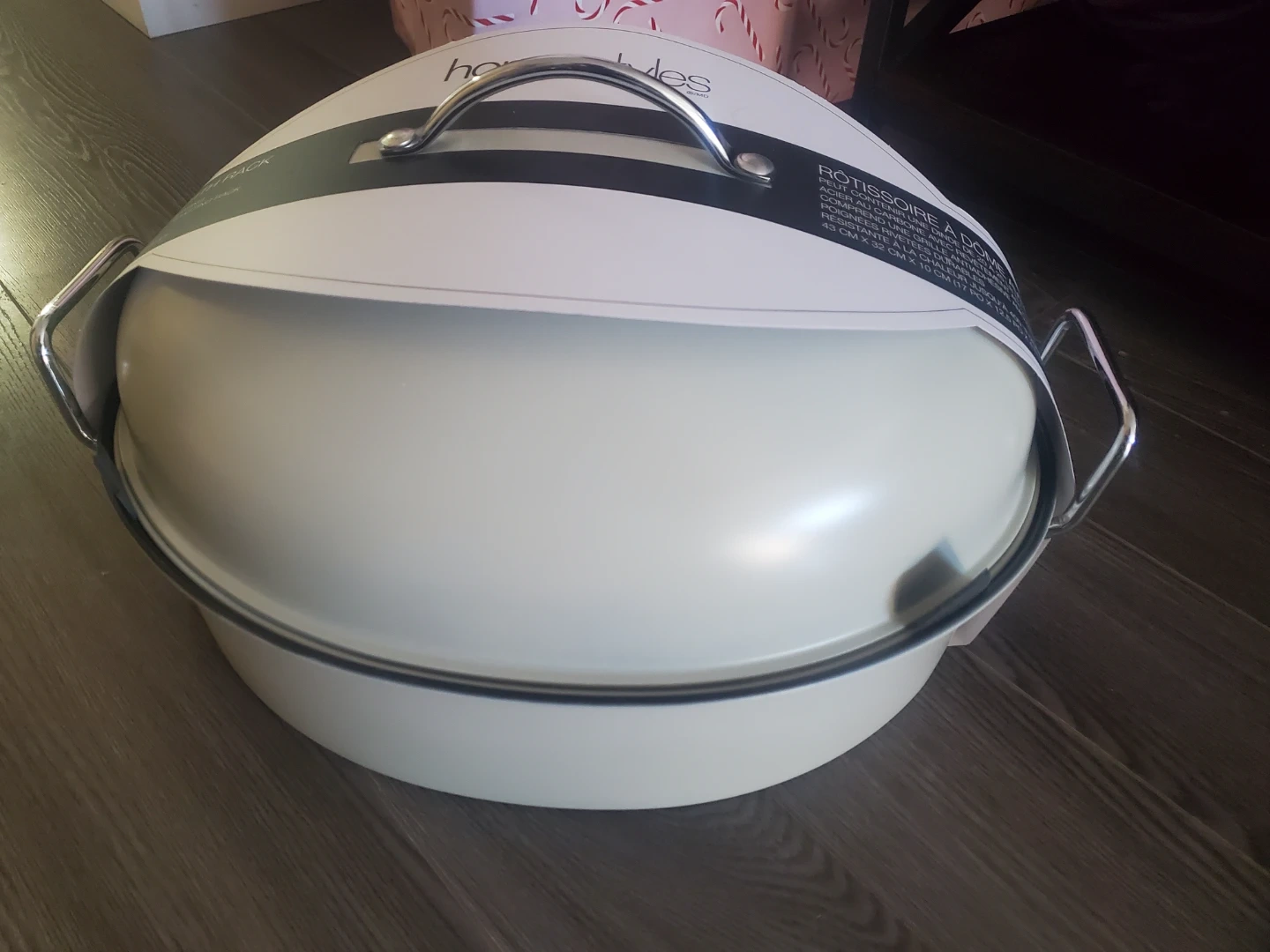 Selling a home styles rotisserie oven rack. It can contain a 25lb turkey and includes a grill rack. It's heat resistant and measures 43 cm x 32 cm x 10 cm