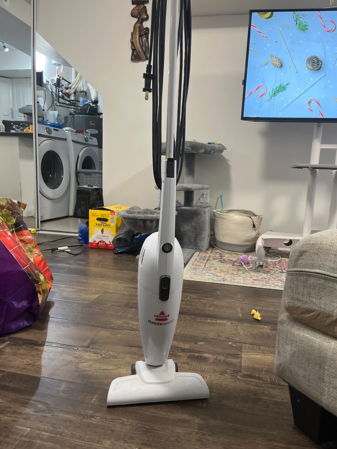 Selling a Bissell FeatherWeight stick vacuum! It's a lightweight and bagless vacuum that's easy to use for quick cleanups on hard floors. Perfect for dorms, apartments, or smaller homes!