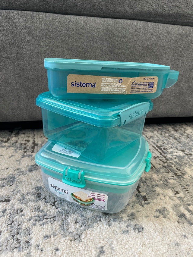 Set of 3 plastic containers. NEW! Perfect for meal prep, snacks, or food storage. Durable, BPA-free pickup at Danforth & Broadview no delivery cash payment