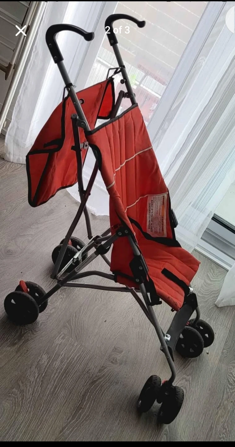 Selling a Bily baby stroller in red. Foldable baby stroller. It's in perfect condition and ready for a new little one!