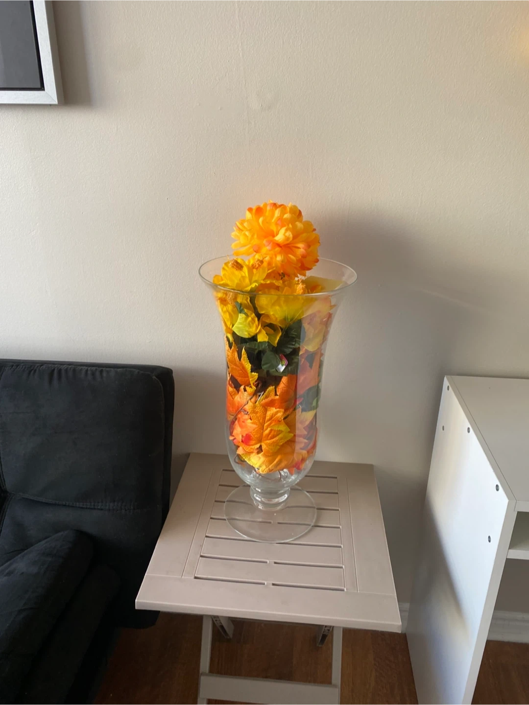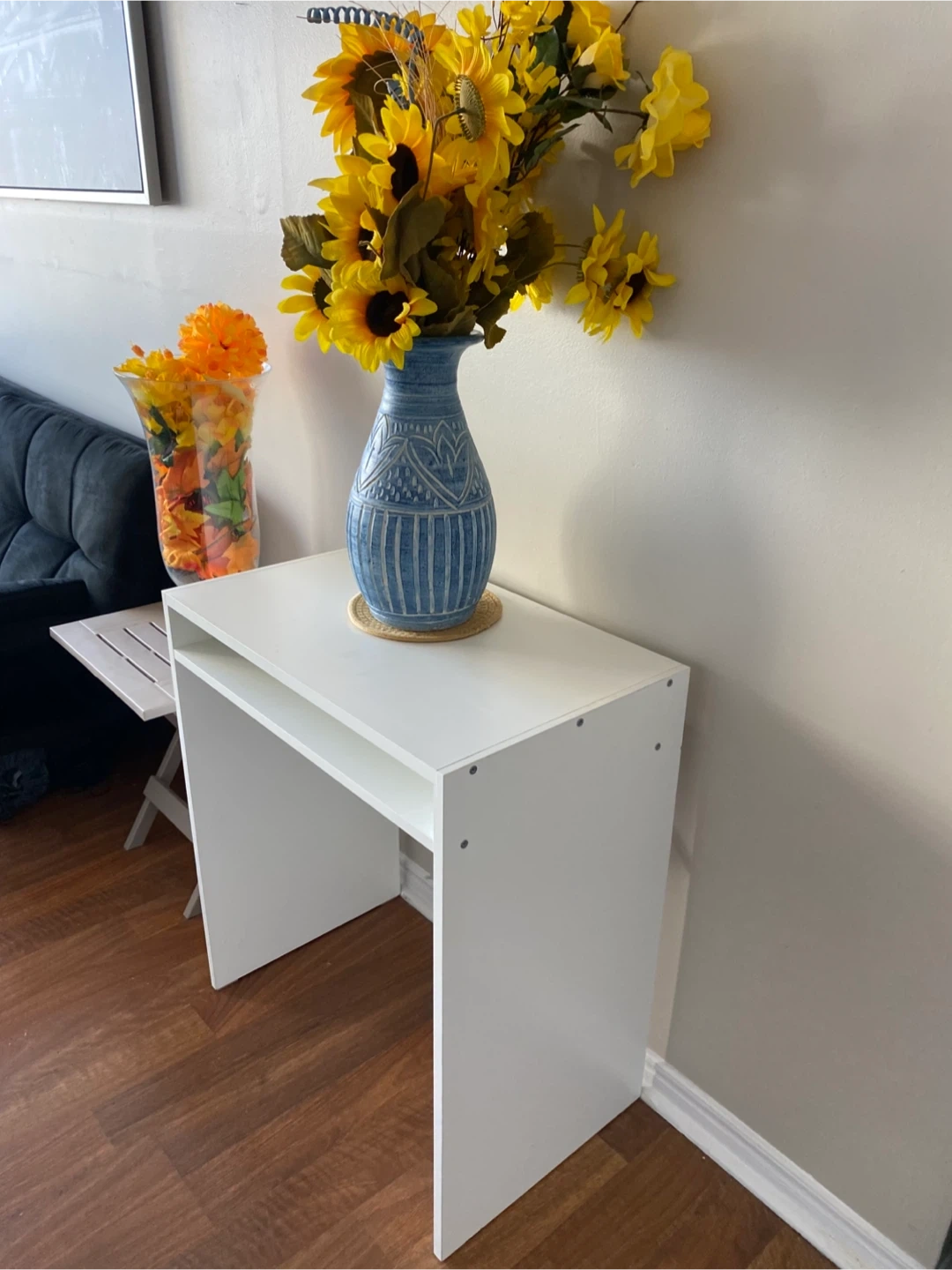 I'm selling a vase with faux flowers, perfect for adding a touch of colour to any room! It's in great condition and ready to brighten up your space.
