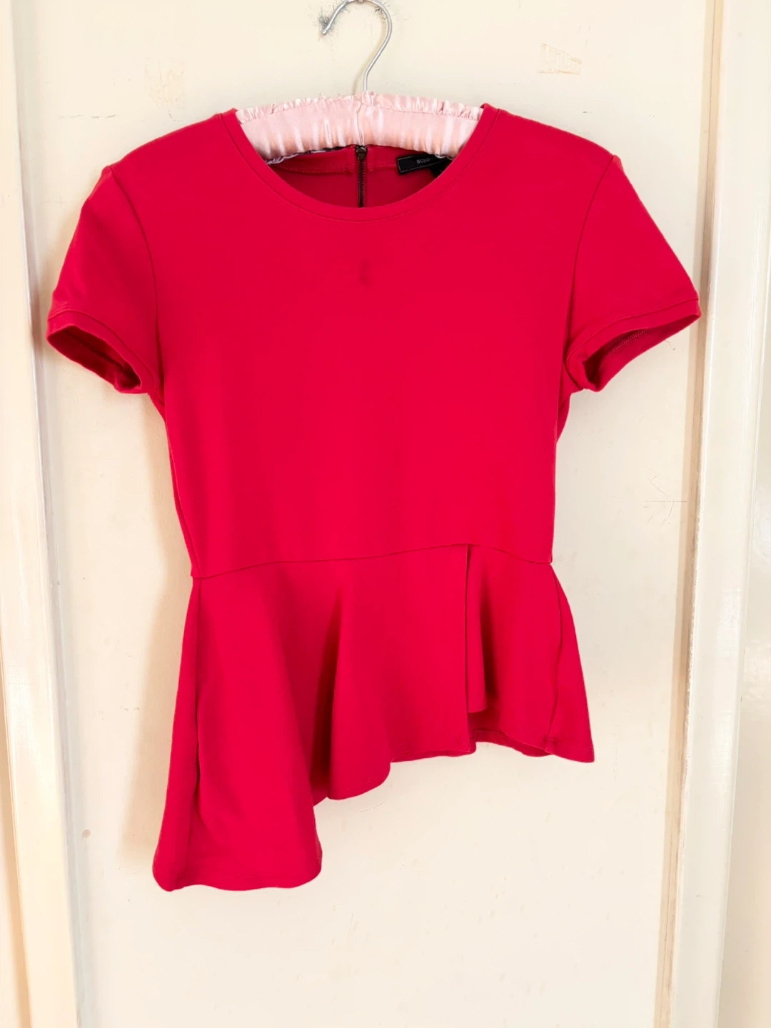 This is a BCBGMAXAZRIA Jeweled Top in size XXS. It's a vibrant red colour and made of a blend of 65% rayon, 30% nylon, and 5% spandex. Perfect for adding a pop of colour to your wardrobe!