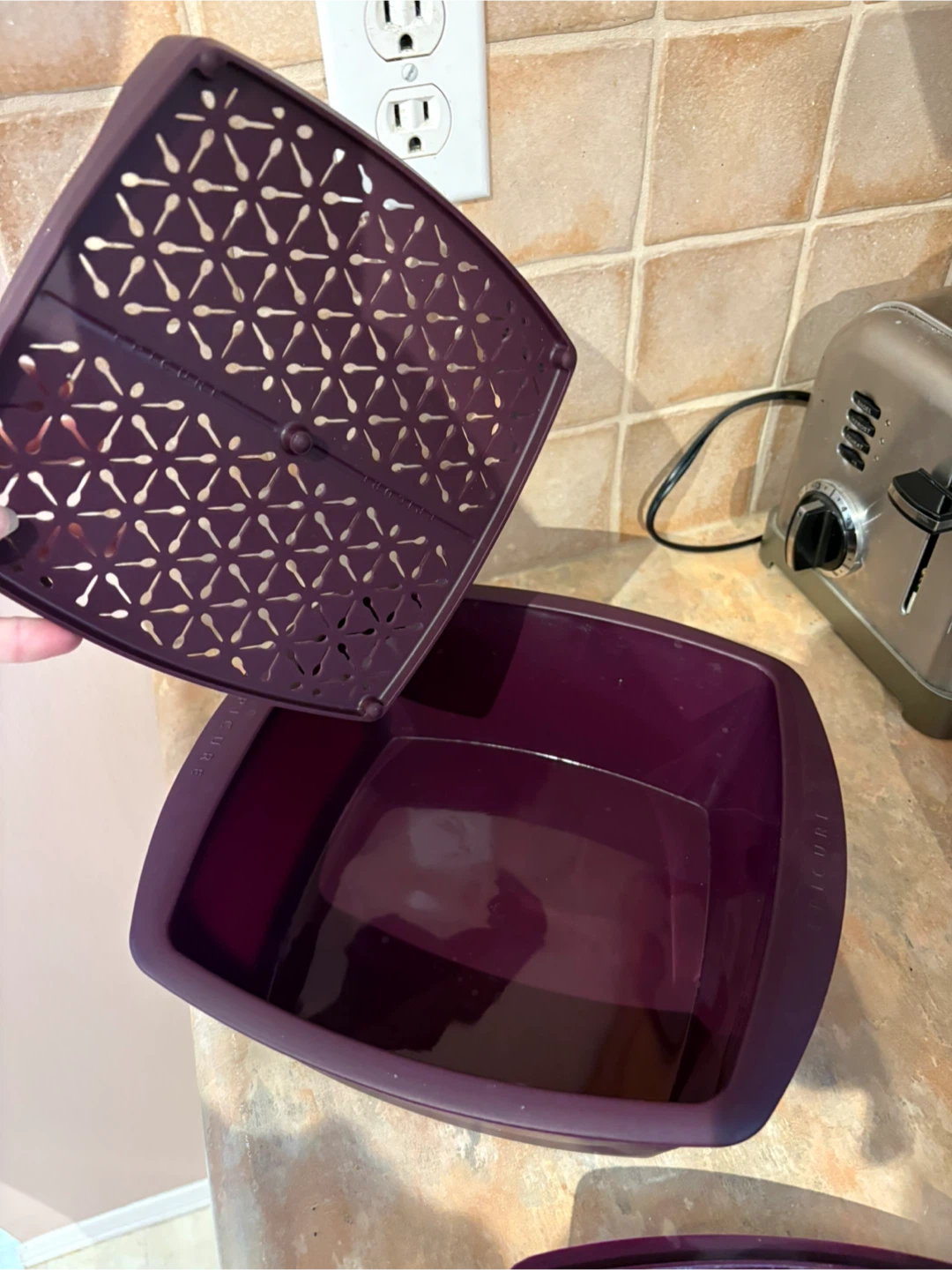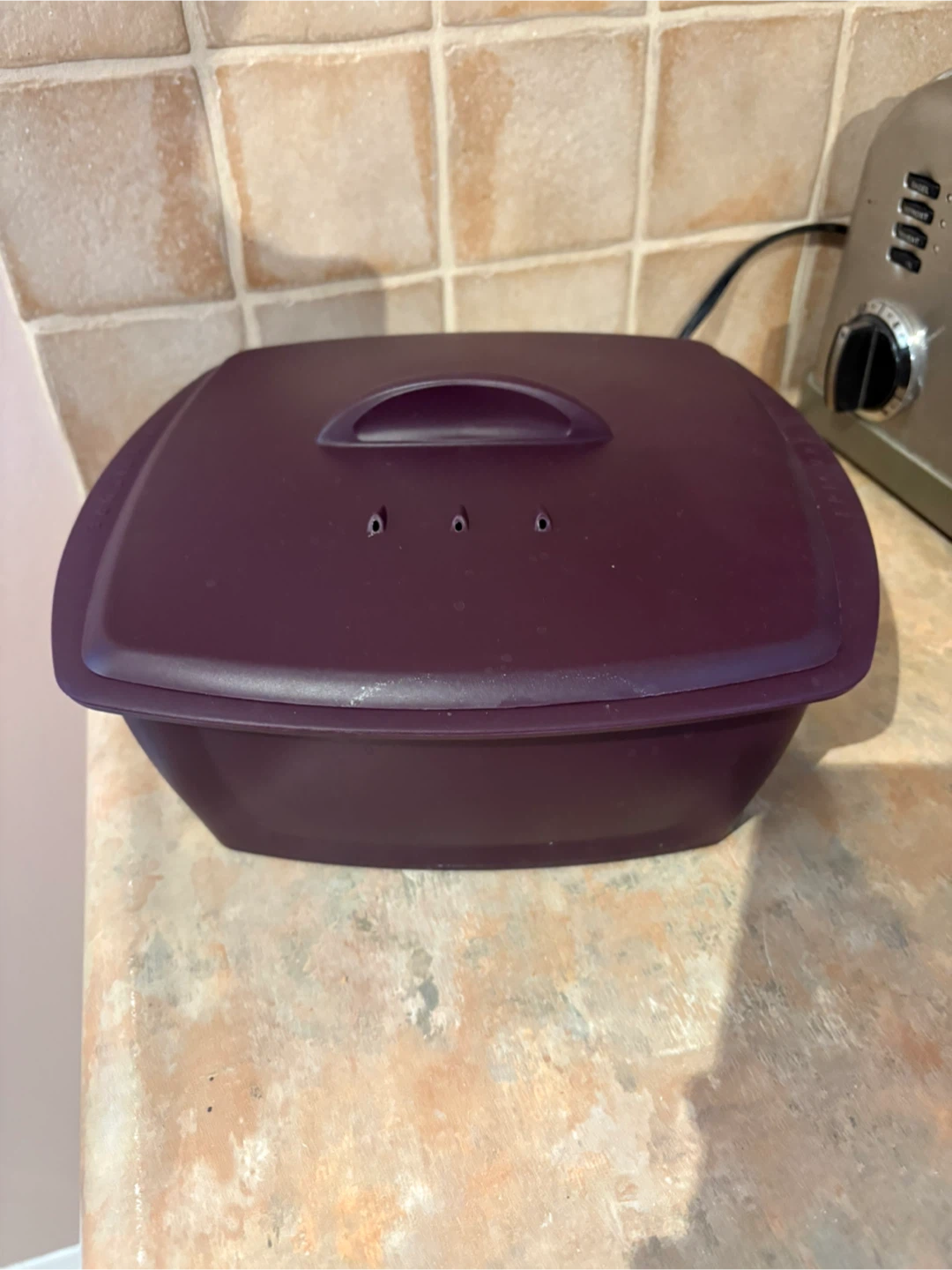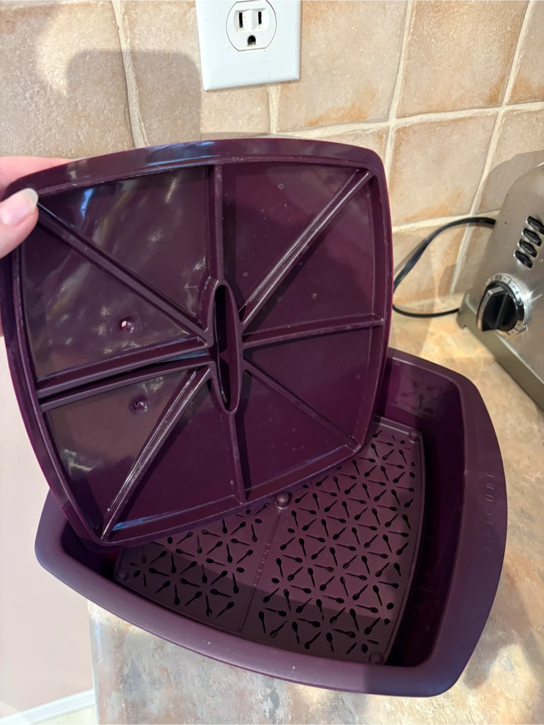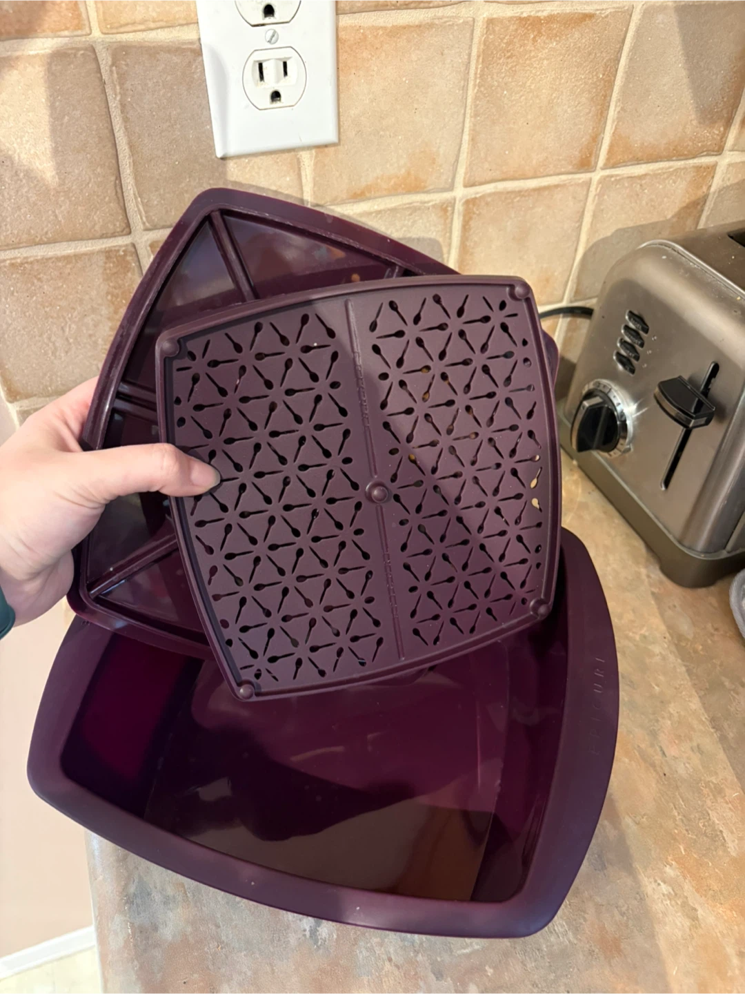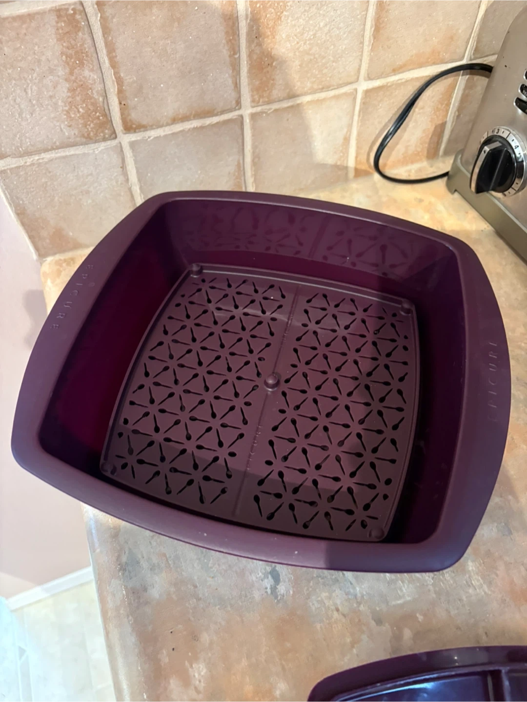 Selling a purple Epicure steamer set. It includes the base, steamer basket, and lid. Great for steaming veggies or other food items!