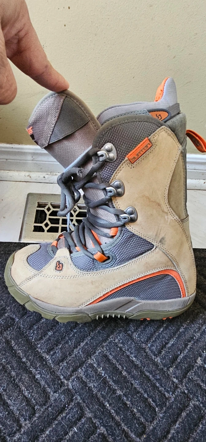 Board: Burton B1303, size 150 cm; Bindings: Morrow (left); Boots: Burton Driver, size 6