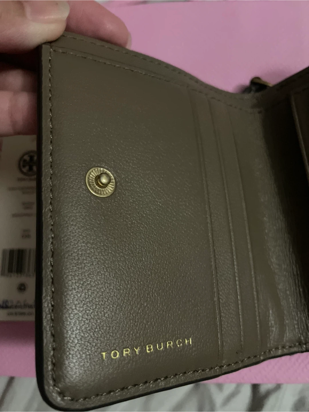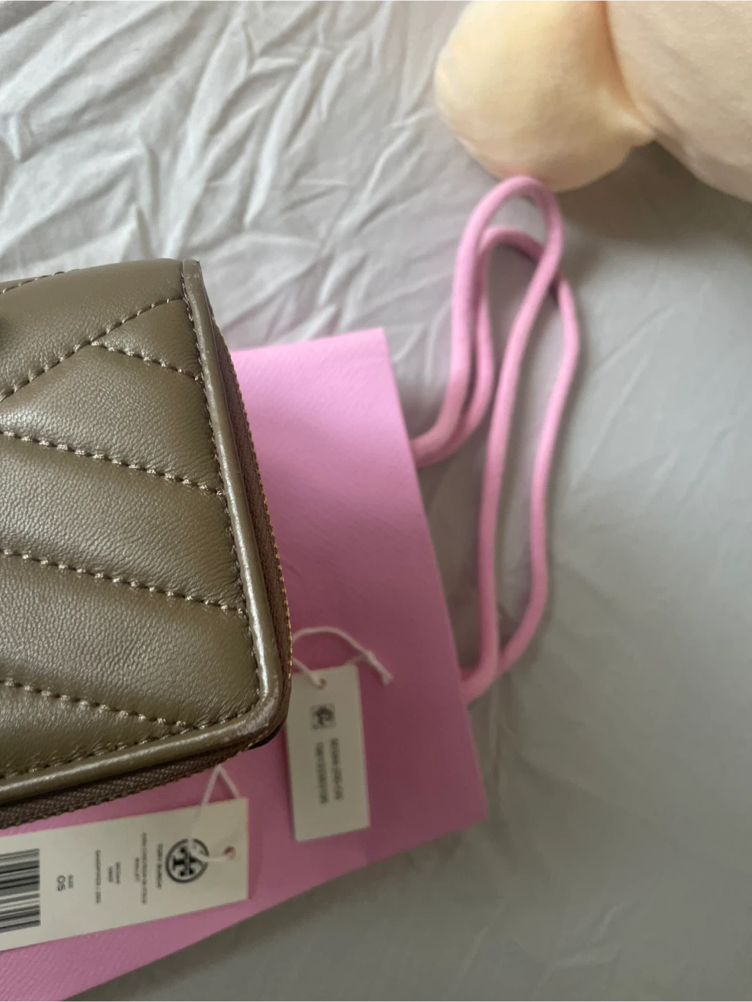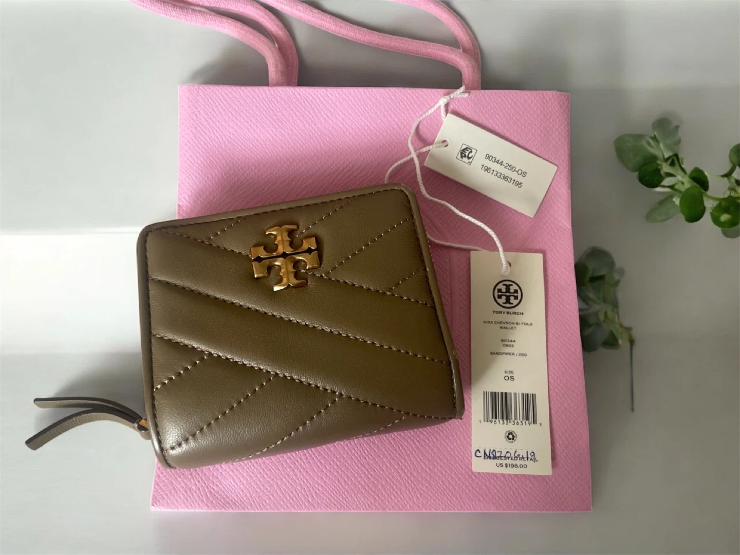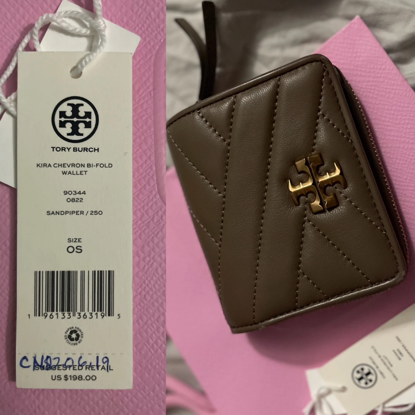 Selling a gently used Tory Burch Kira Chevron Bi-Fold Wallet in Sandpiper colour and size OS. It has a few scuffs as shown in the pictures. ‼️‼️Some sign of wear on edges/bifold area The colour is a beautiful sandpiper. Originally retailed for $198 USD. A perfect compact wallet for everyday use! Color changes on some pictures due to lighting Whitehorn ne