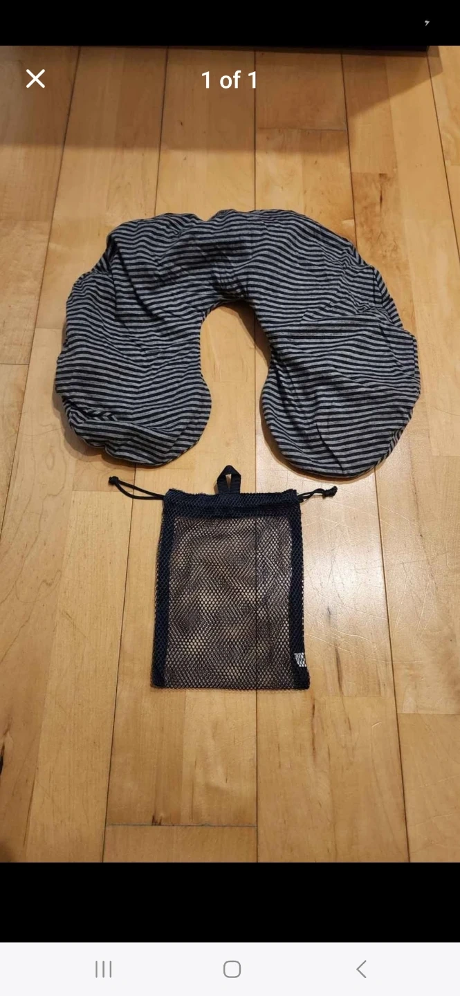 Inflatable Foldable Blue& Grey Stripes Travel Neck Pillow (Brand New)