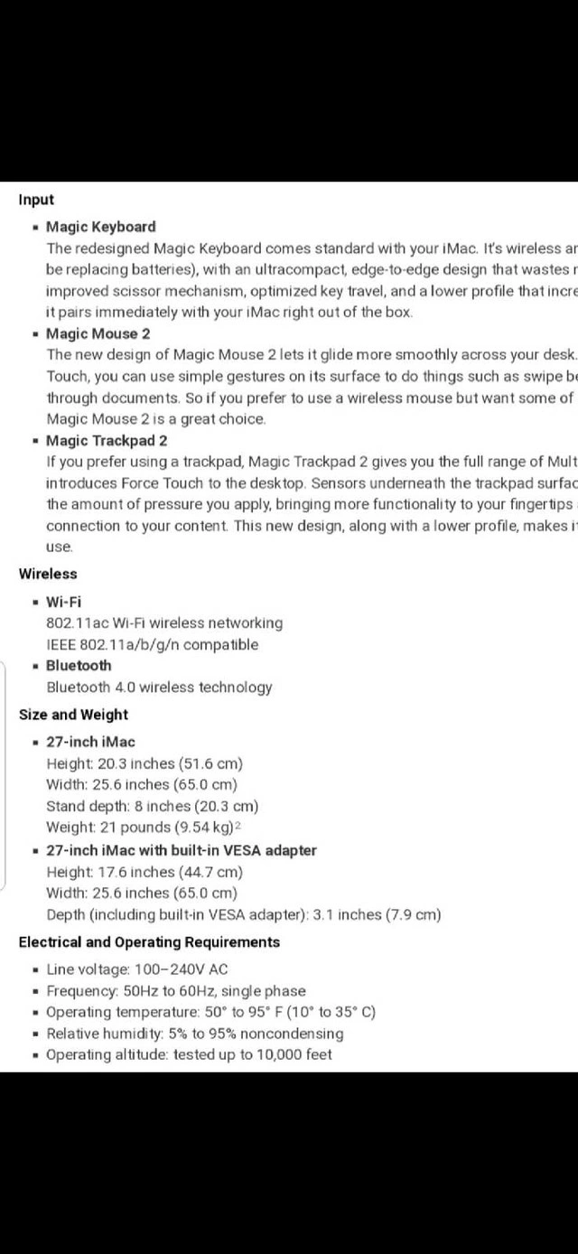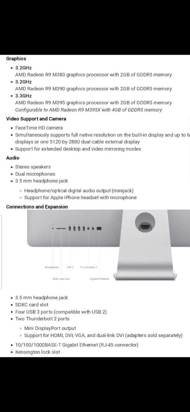 * 27-inch (diagonal) Retina 5K display with IPS technology