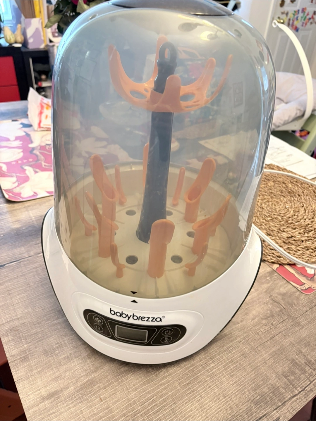 Selling a Baby Brezza baby bottle sterilizer and dryer! It kills 99.9% of harmful bacteria with steam, then dries and auto shuts-off. It has three drying cycles: rapid dry (30 min), normal dry (45 min), and extra dry (60 min). Originally bought for $129!