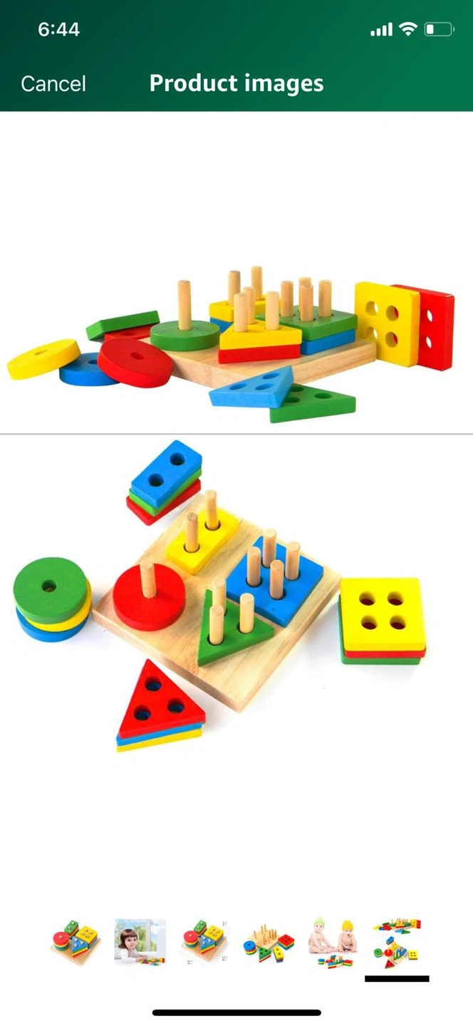 I'm selling a Boxiki Kids Geometric Stacker toy. It's a fun and educational toy for kids. The toy includes 16 solid-wood pieces. It also comes with the original box!