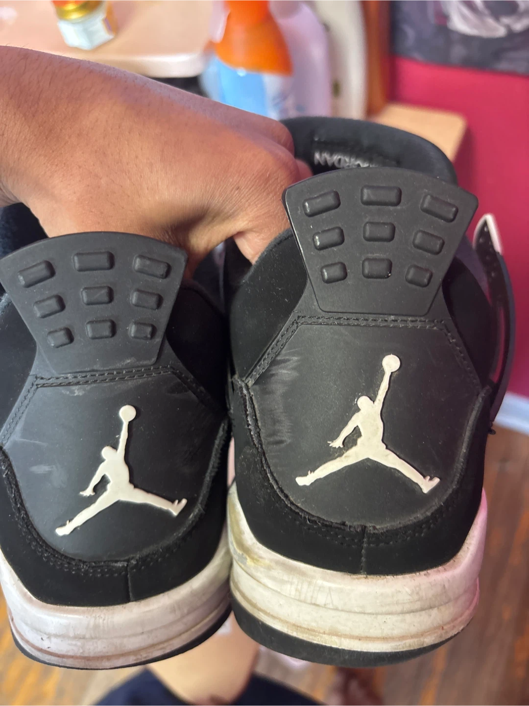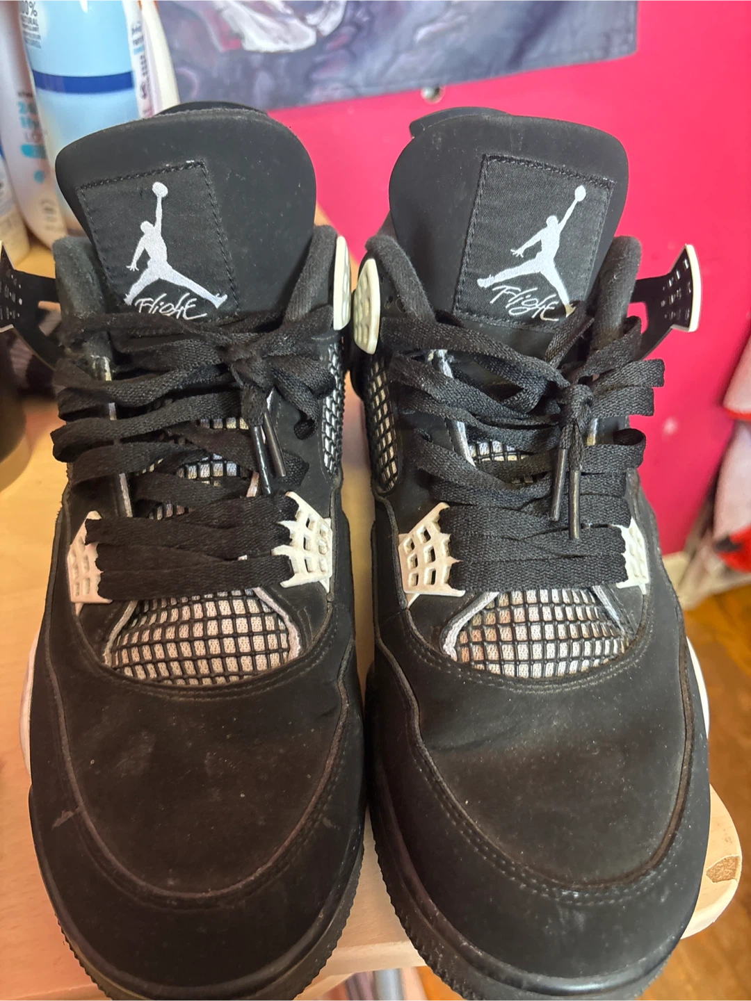 Selling a pair of Jordan 4 Retro Black Cat sneakers. They're in used condition, as you can see in the photos. Great for casual wear or adding to your collection!