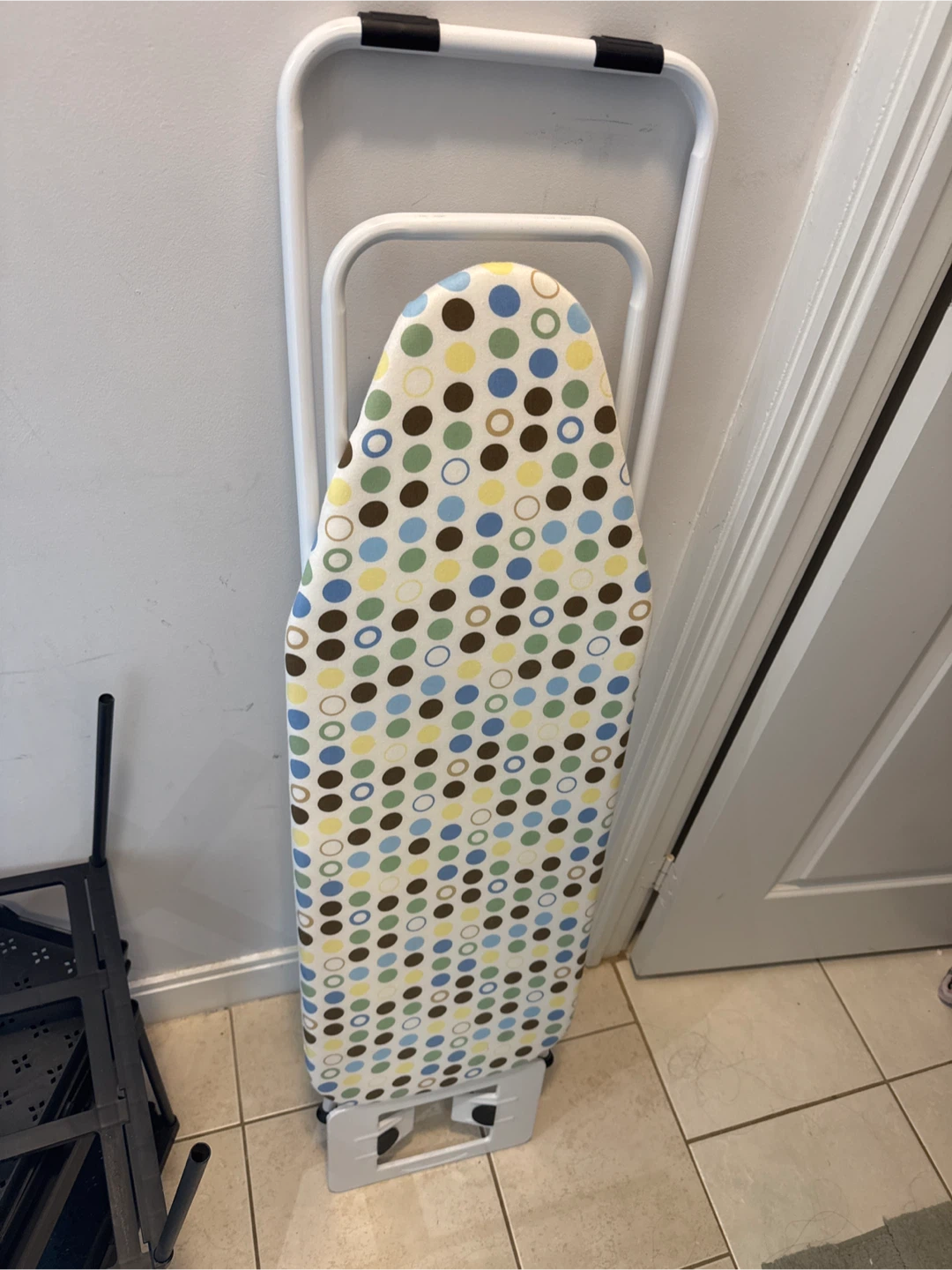 Selling a foldable ironing board in great condition! It's easy to store and perfect for small spaces. The cover has a cute polka dot pattern.