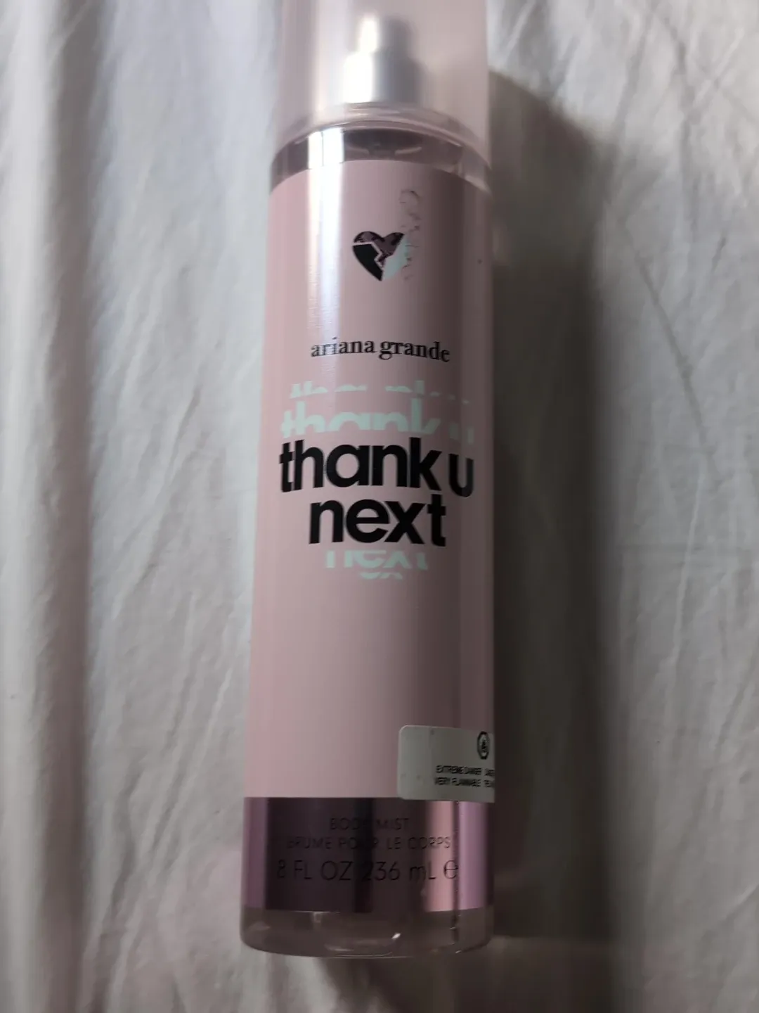 Selling an Ariana Grande Thank U Next body mist! It's in new and unused. The bottle contains 8 fl oz (236 mL) of the body mist.
