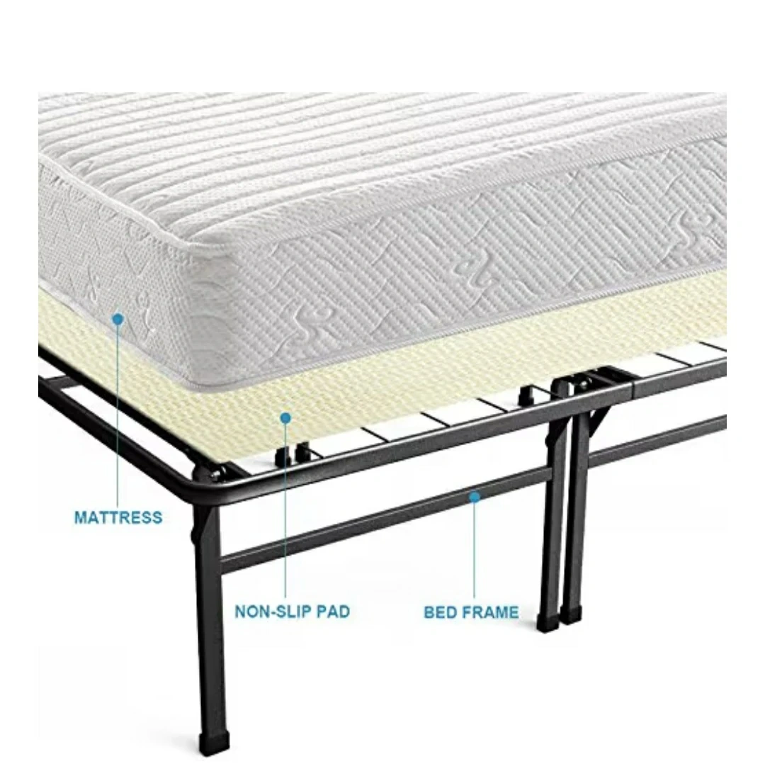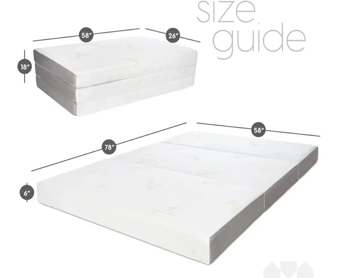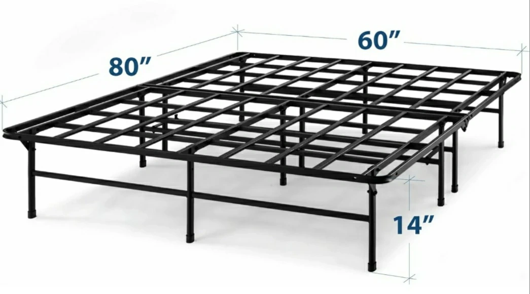 Selling a Queen size bed- includes a queen-size metal bed frame in black. It measures 60" x 80" and is 14" tall. A trifold memory foam mattress, non slip sheet and removable metal supports to prevent mattress slipping off the metal frame, a mattress protector cover/bag for storage when not in use. Its a full package ideal for a guest or as an routine use queen bed for a good night's sleep!