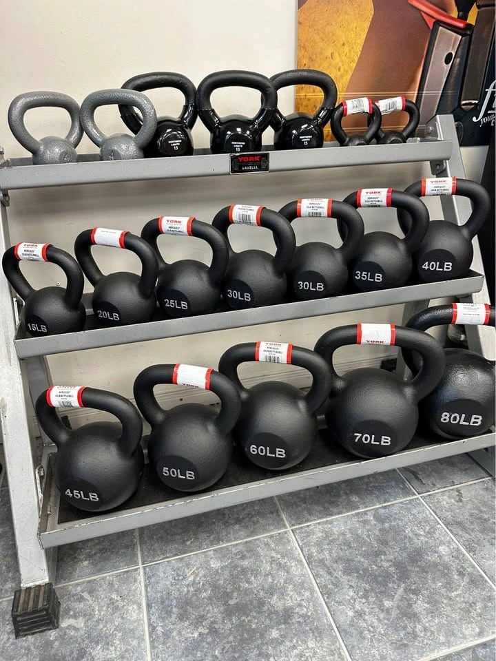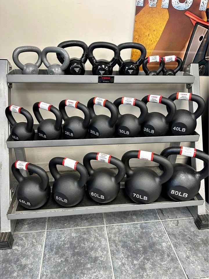 Selling brand new York kettlebells in all sizes from 5 lb to 80 lb, plus a commercial 3-tier kettlebell rack. Perfect for home gyms, studios, personal trainers, CrossFit setups, and garage gyms.