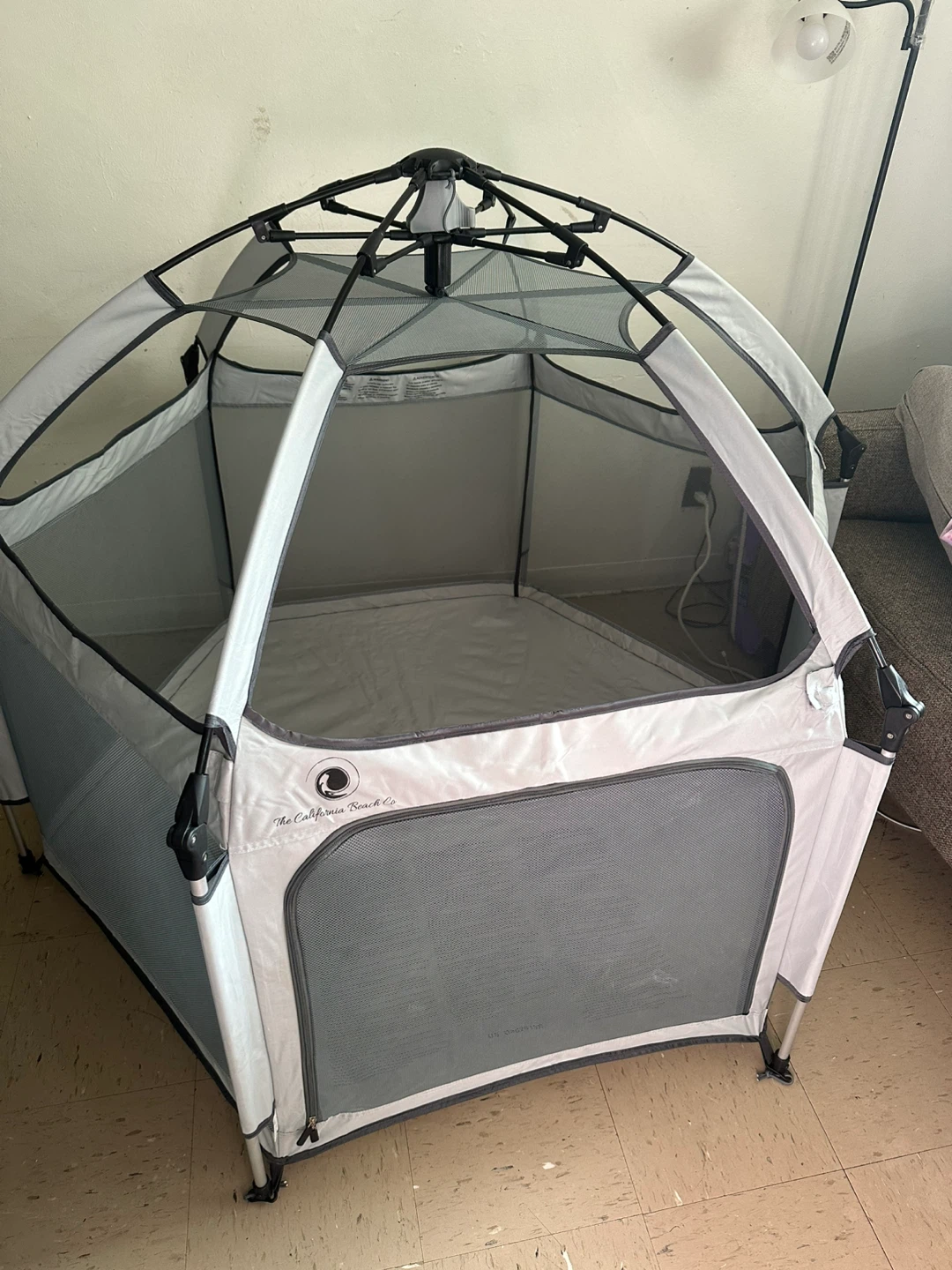 Selling a California Beach Co. Pop N' Go Playpen! It's in great condition and comes with the carrying bag .. cover and stakes for outdoor use. Perfect for the beach, park, or even just in the backyard! Pick up only East 106th st and 1st ave!
