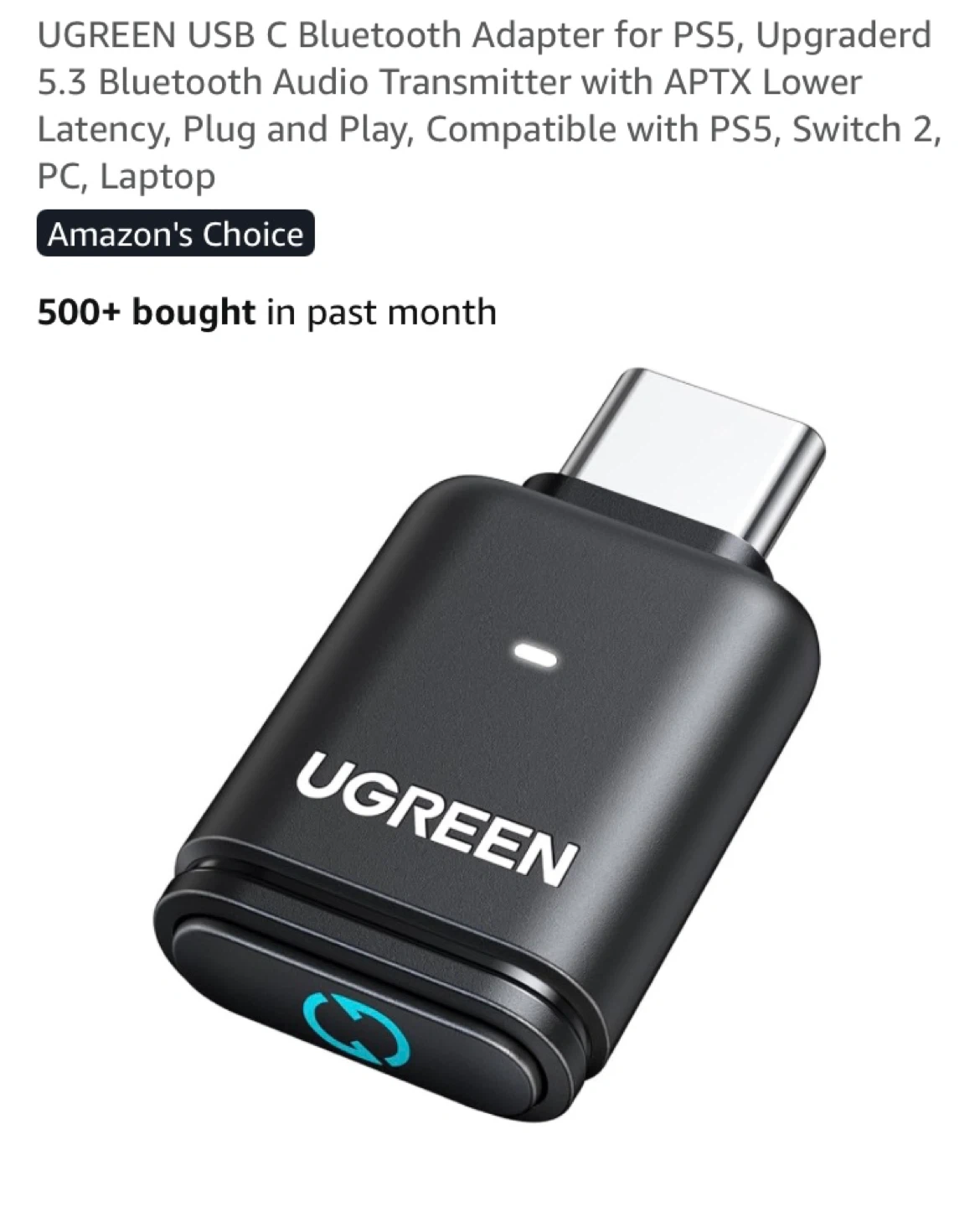 It's a USB-C adapter for PS5 and Switch, and has upgraded 5.3 Bluetooth audio transmitter with APTX lower latency. It's plug and play, and compatible with PS5, Switch, PC, and Laptops.