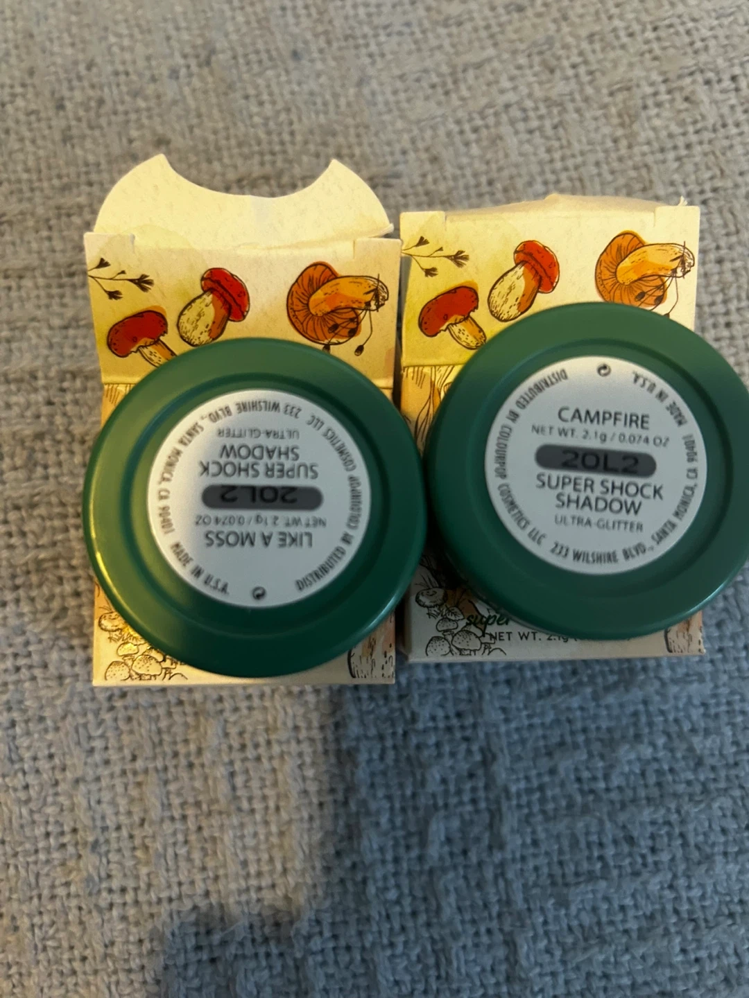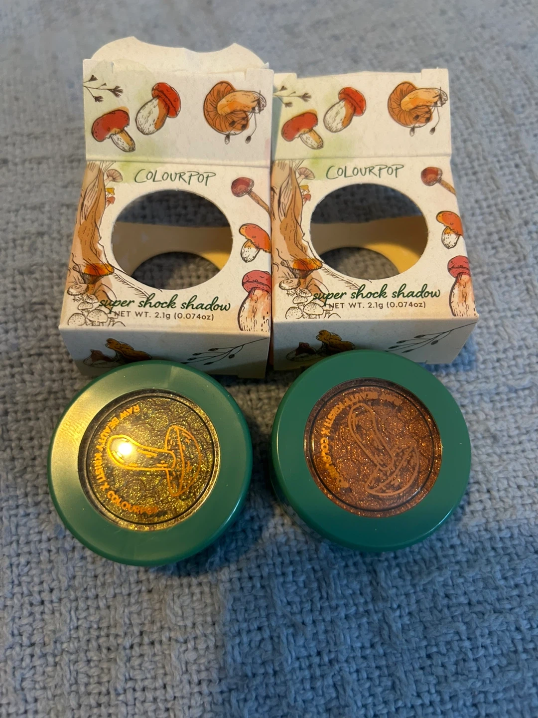 Selling two ColourPop Super Shock Shadows! One is in the shade 'Like a Moss' and the other is 'Campfire'. Both are ultra-glittery and come in their original boxes. Net weight is 2.1g (0.074 oz) each