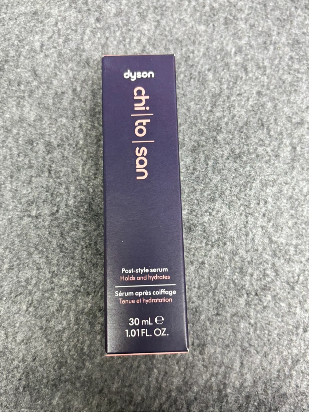 Selling a Dyson post-style serum! It holds and hydrates your hair, and it comes in a 30mL bottle. Perfect for keeping your hair looking its best!