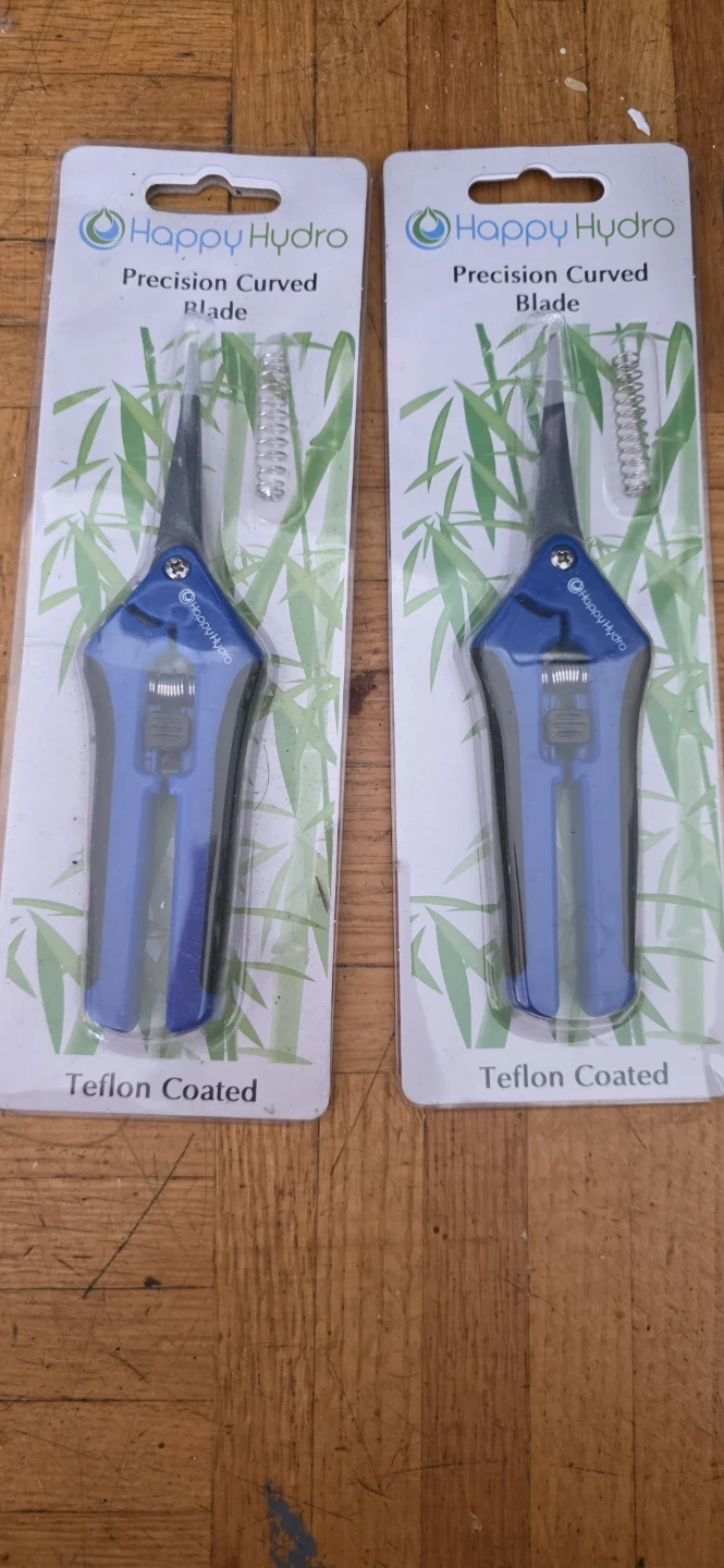 I have Happy Hydro Trimming Scissors with straight tips available! They feature titanium coated blades with spring-loaded comfort grip handles. They are brand new in the package!