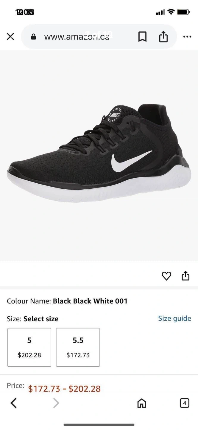Nike Free RN 2018 Black/White Size 7