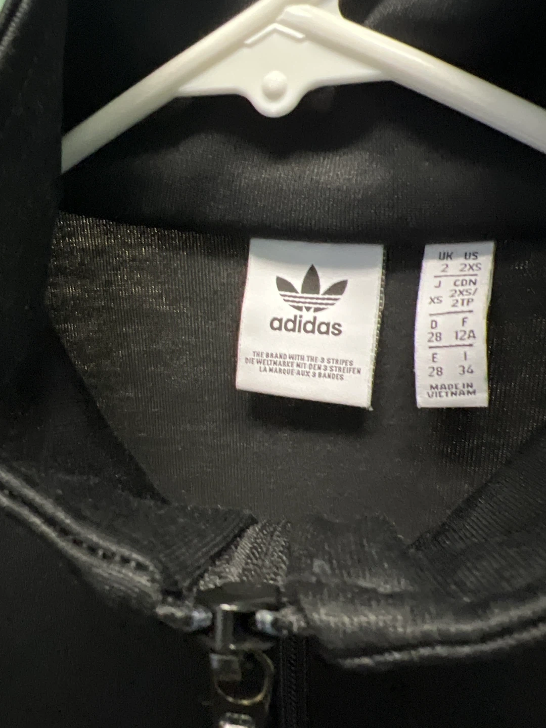 Selling a super cool Adidas track jacket in black! It's a size 2XS (Women) and in great condition. Perfect for workouts or just to wear comfortably out.