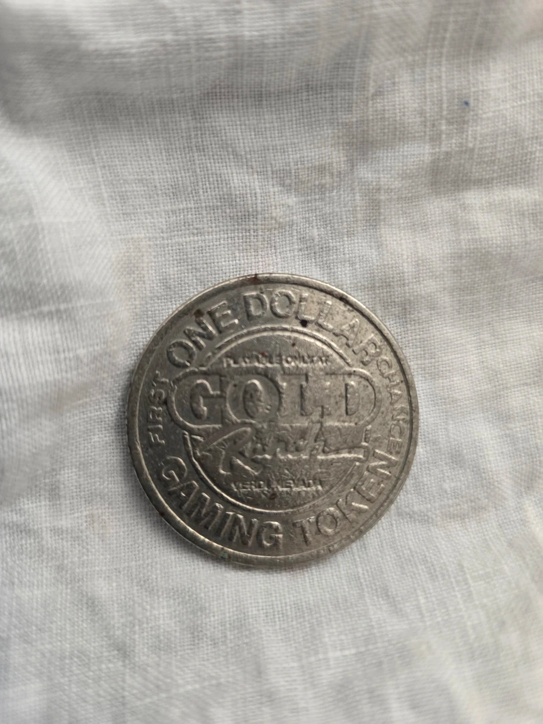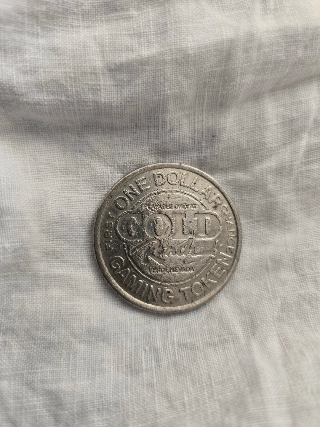Here's a Gold Ranch Gaming Token. It says 'First One Dollar Chance Gaming Token' and 'Playable Only At Gold Ranch, Verdi Nevada'.