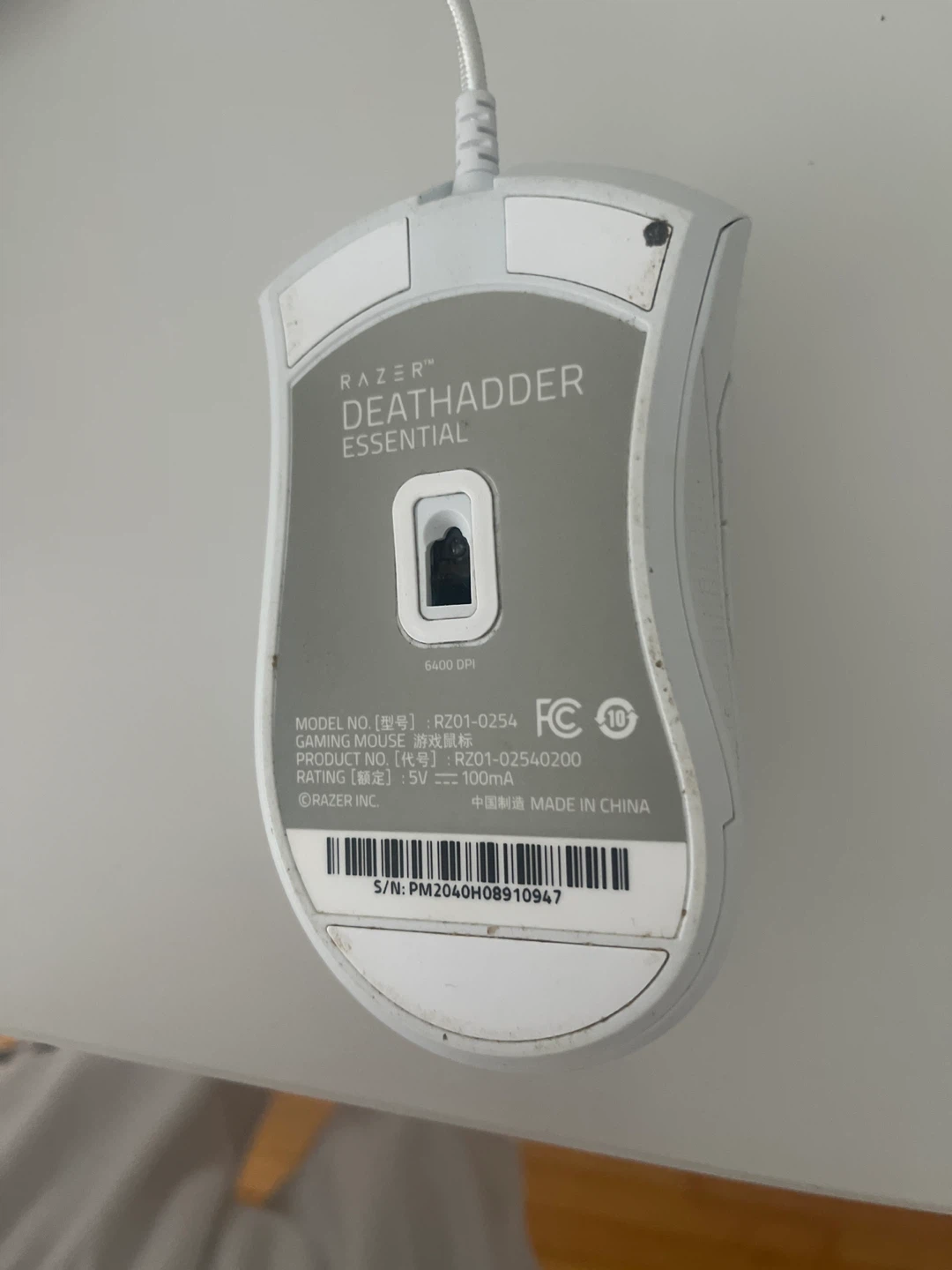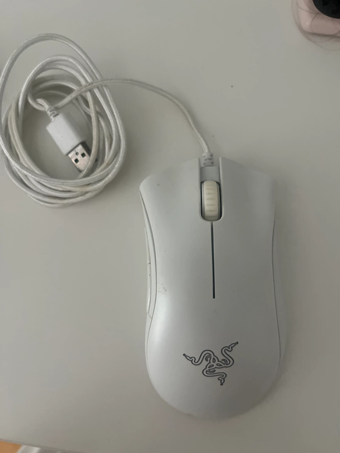 Selling a Razer DeathAdder Essential gaming mouse in white. It's in good condition and ready for a new setup. This mouse has a 6400 DPI sensor for precise tracking and a comfortable ergonomic design for those long gaming sessions. Going to be cleaned and sanitized! Works perfectly fine!