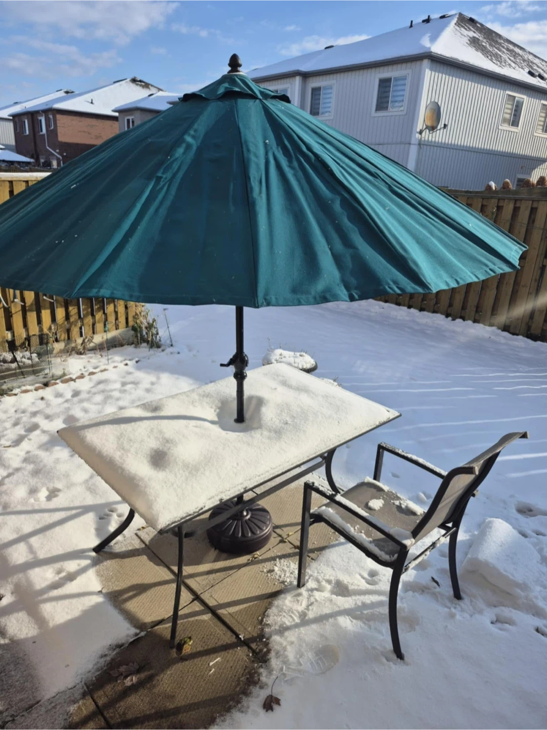 Buy & SellOutdoor Table, Chair and Umbrella SetOutdoor Table, Chair and Umbrella Set$100Outdoor table, chair, and umbrella set covered in snowConditionGoodWHERE TO MEETL5WView MapSELLERyashnaLittles Corners100 reviews0 chats·0 favorites·8 viewsSEND CHAT TO SELLERHi yashna! I’m interested in your listing.Hi yashna! I’m interested in your listing.Get the Karrot app to chatSign In to chat