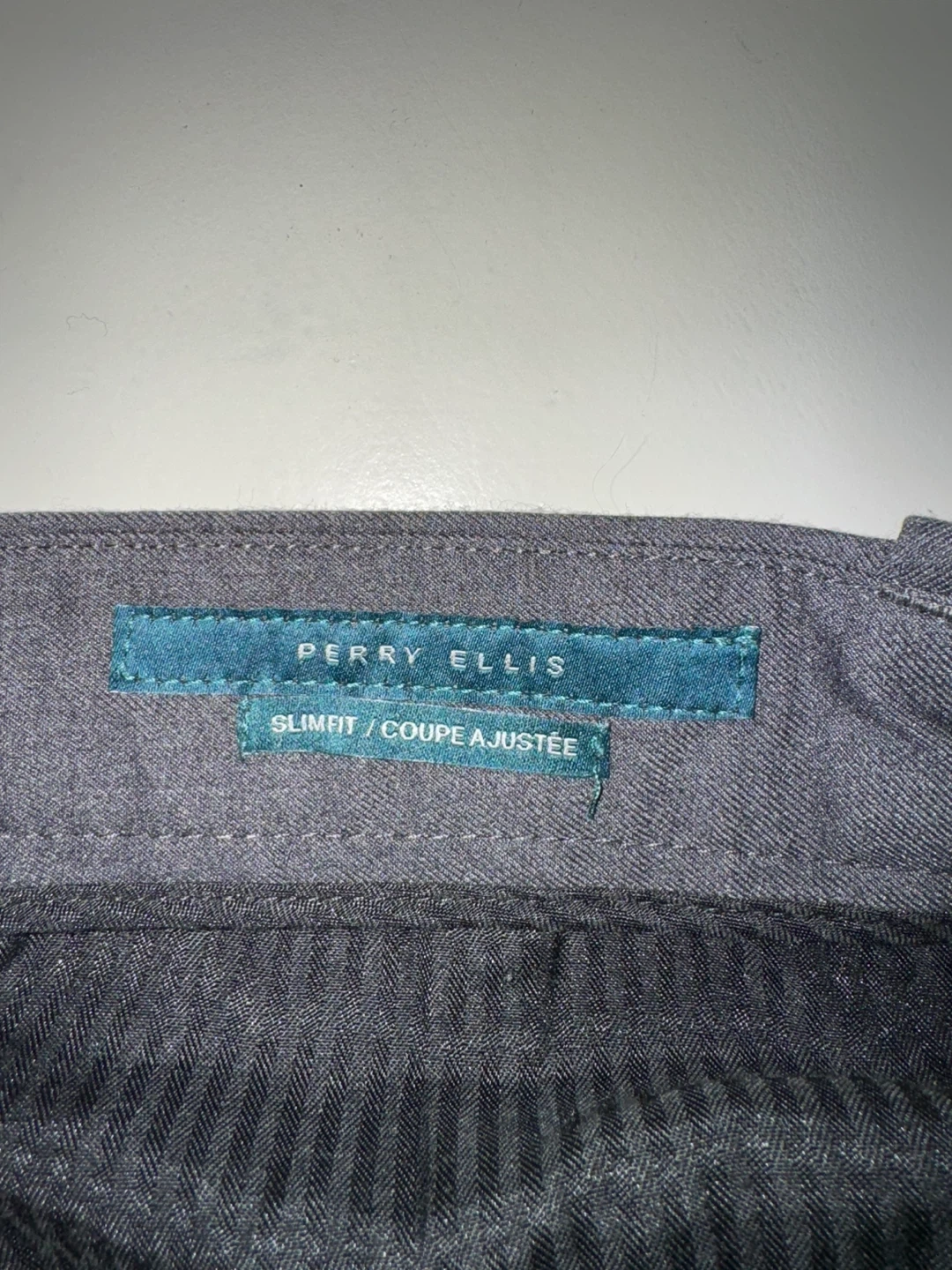 Selling a pair of Perry Ellis slim fit dress pants in size 30x32. They are in great condition and made of 68% polyester, 30% viscose, and 2% elastane. Great condition.