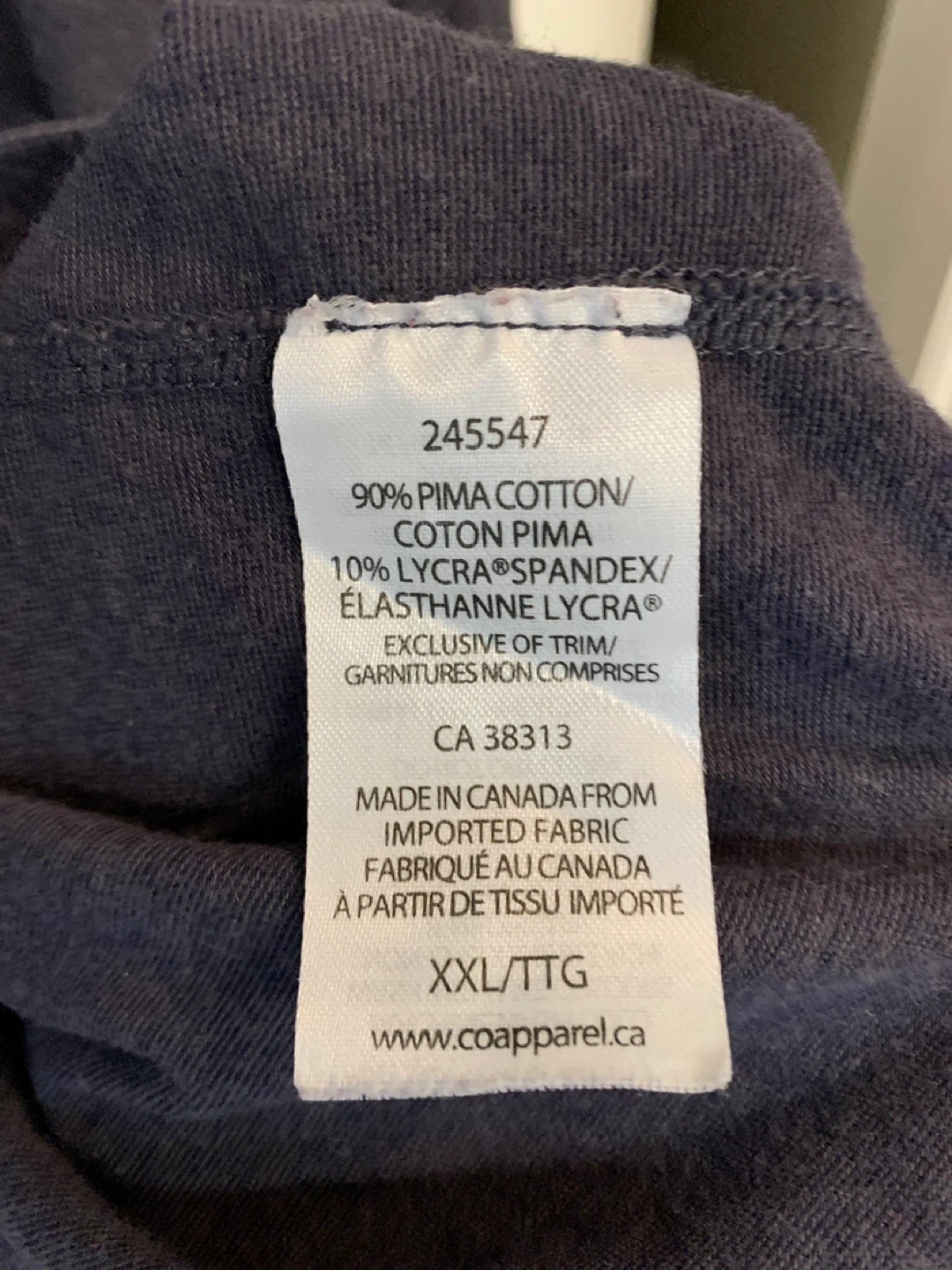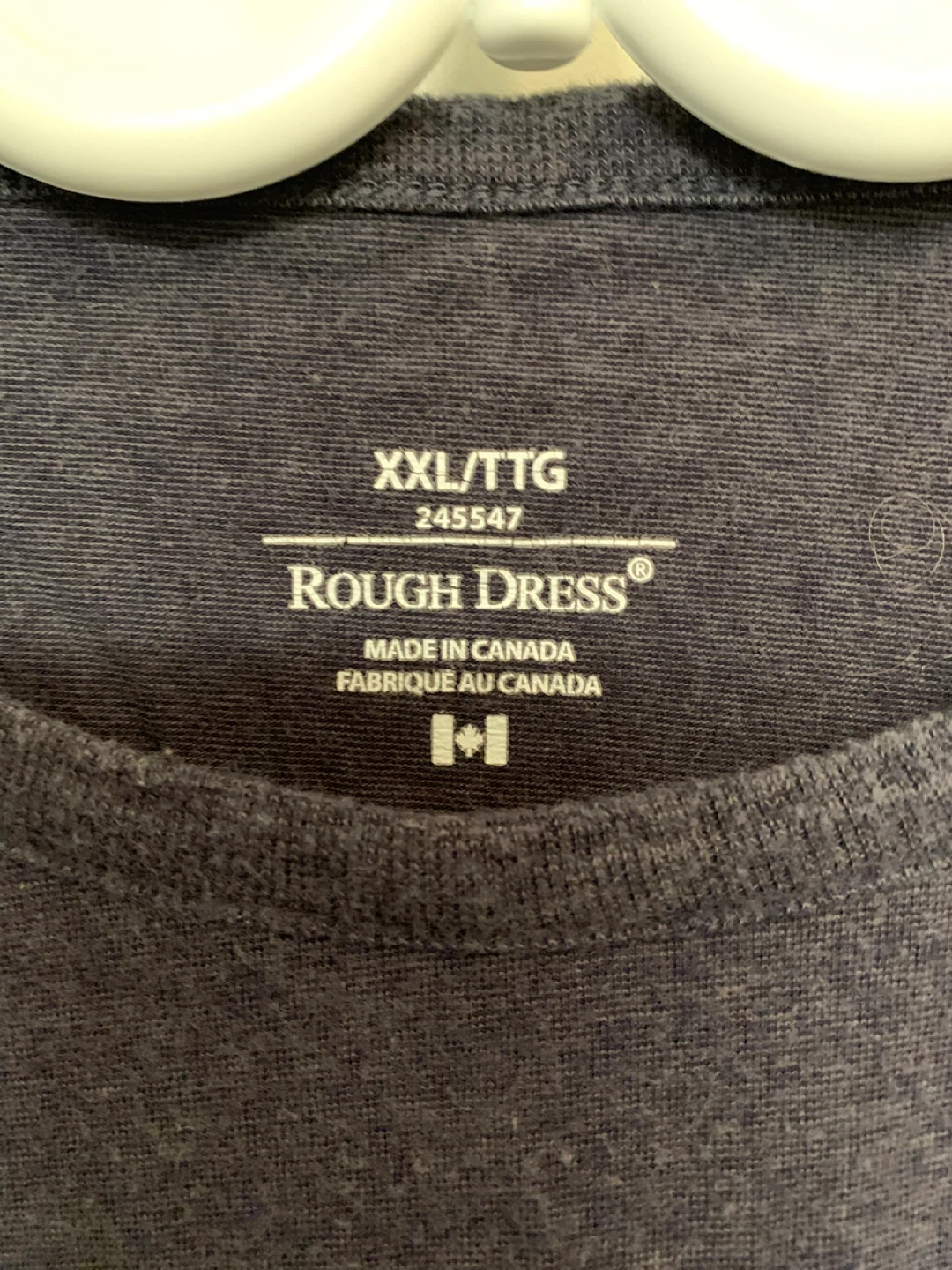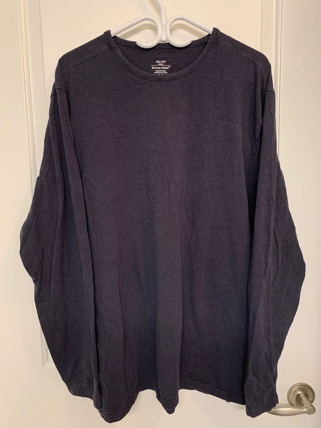 Rough Dress long sleeve shirt in size XXL. Made in Canada from imported fabric. The shirt is made of 90% Pima cotton and 10% Lycra spandex. It measures approximately 75cm in length and 60cm across the chest