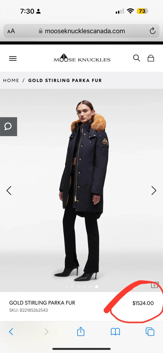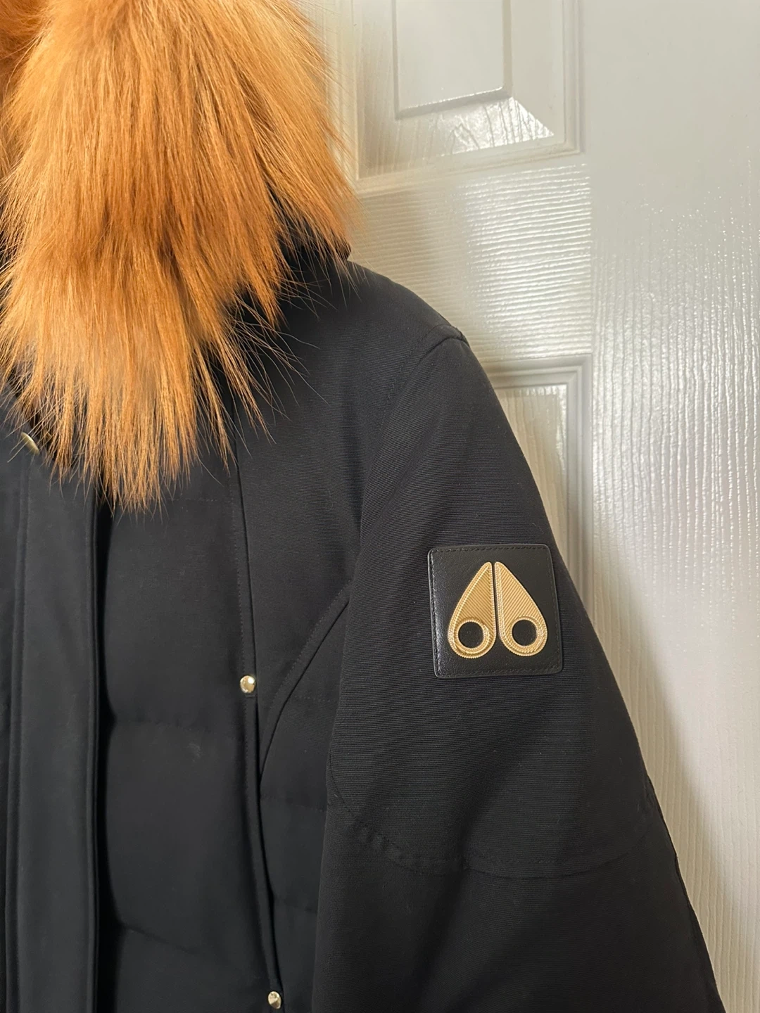XL size. Selling a Moose Knuckles Gold Stirling Parka with fur trim. It is black in colour and has the Moose Knuckles logo on the sleeve. Originally bought for over $1500+tax.
