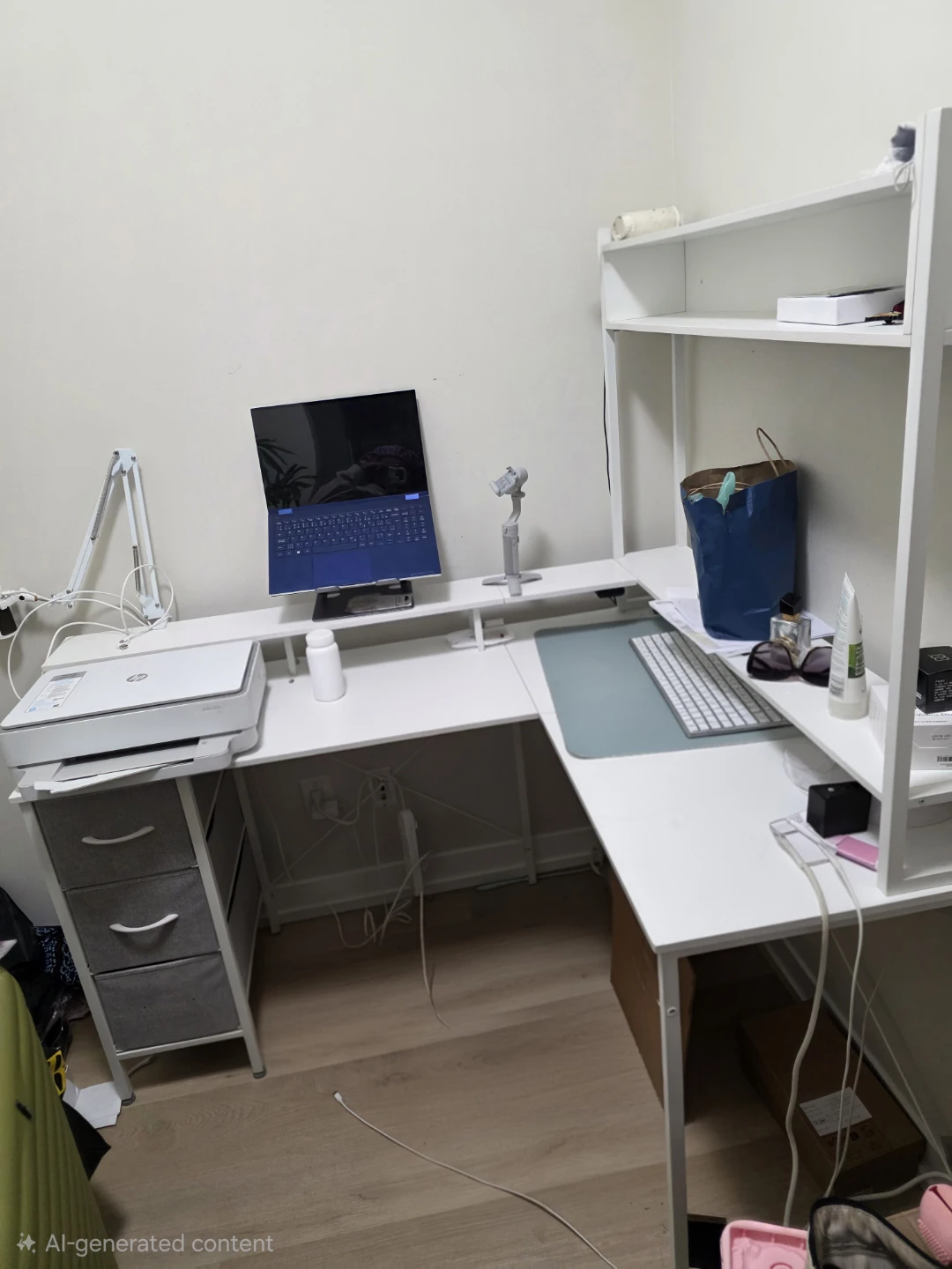 White Corner Desk with Shelves