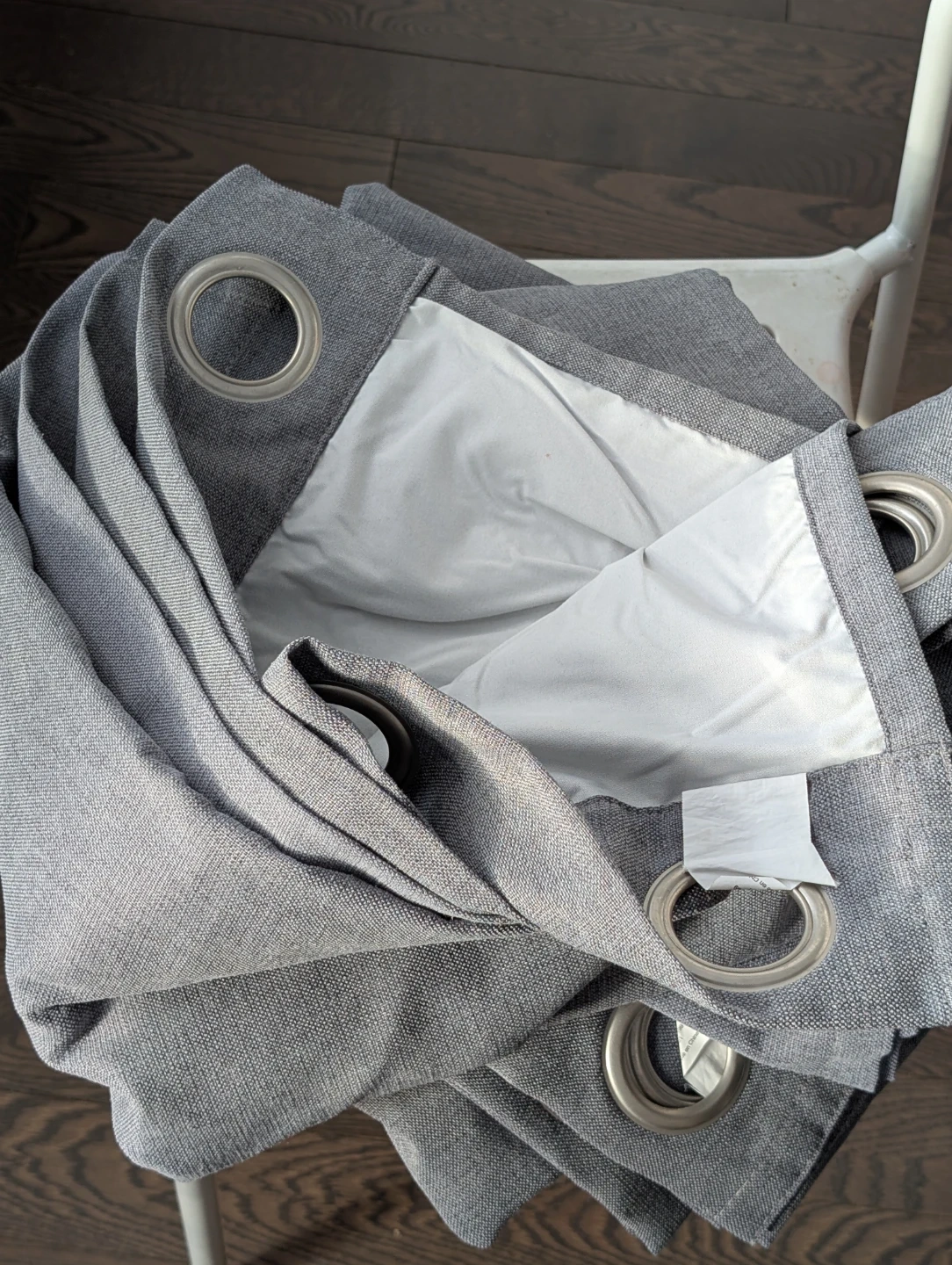 Selling a pair of blackout curtains in grey. They are 84 inches long. These thermal insulated curtains are great for room darkening in a living room or bedroom. They have a grommet top for easy hanging
