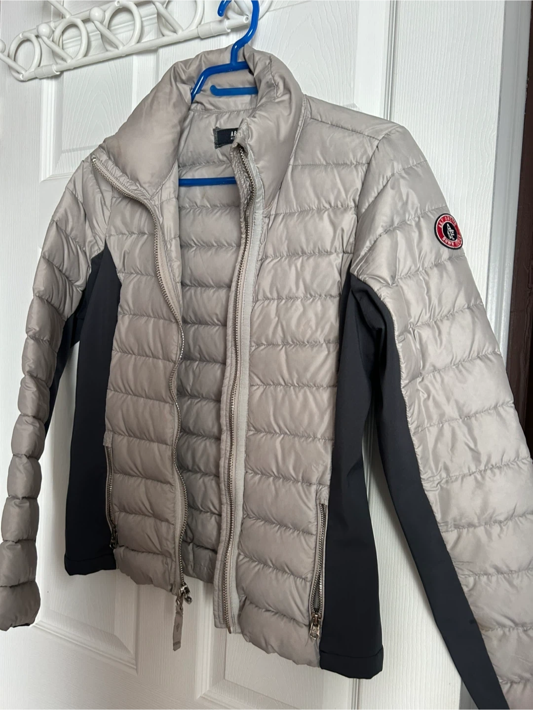 Here's an A&F Active puffer jacket in size medium. It's in great condition and perfect for cooler weather! The jacket features a stylish design with black side panels. It's lightweight and comfortable to wear.