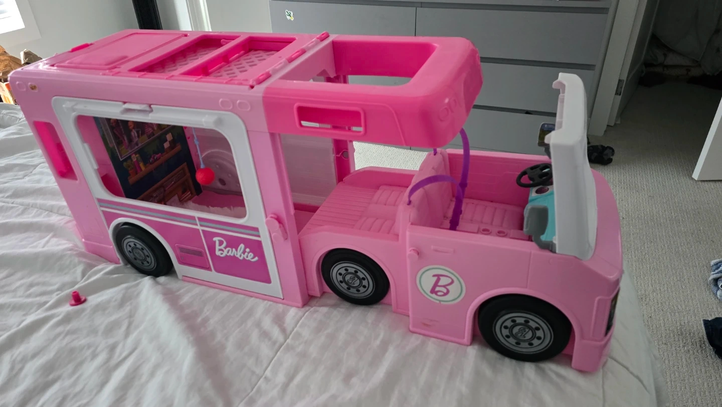 Selling a Barbie DreamCamper vehicle playset! It's in great condition and ready for new adventures. This fun playset is perfect for Barbie fans and includes lots of interactive features for imaginative play