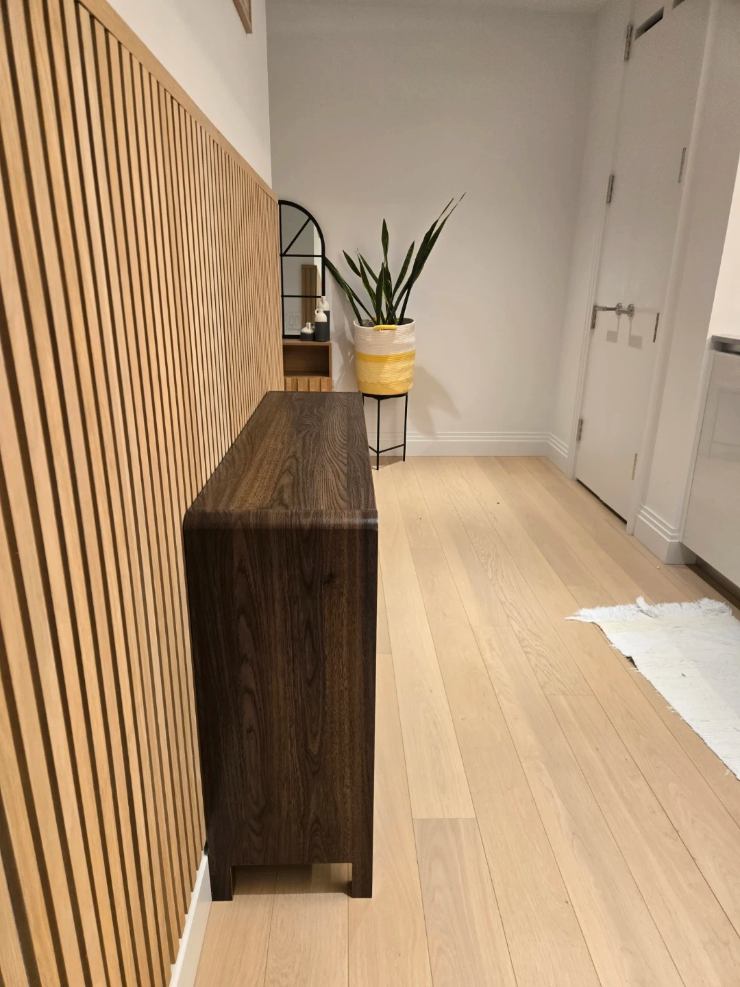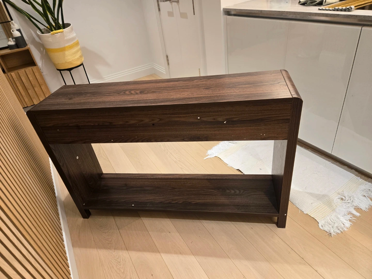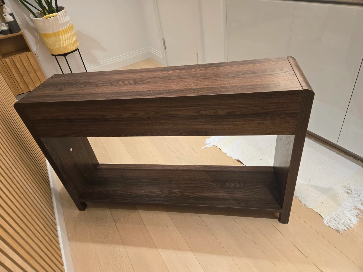 This elegantly designed console table combines minimalist aesthetics with practical functionality. Featuring softly rounded corners for safety, two spacious drawers with a unique waveform panel for stylish storage, and a sturdy structure that supports heavy loads, it is both a statement piece and a reliable storage solution. Whether placed in the entryway, behind a sofa, or in a hallway, this versatile table offers ample space to display décor, organize daily essentials, and enhance your home with its refined charm.